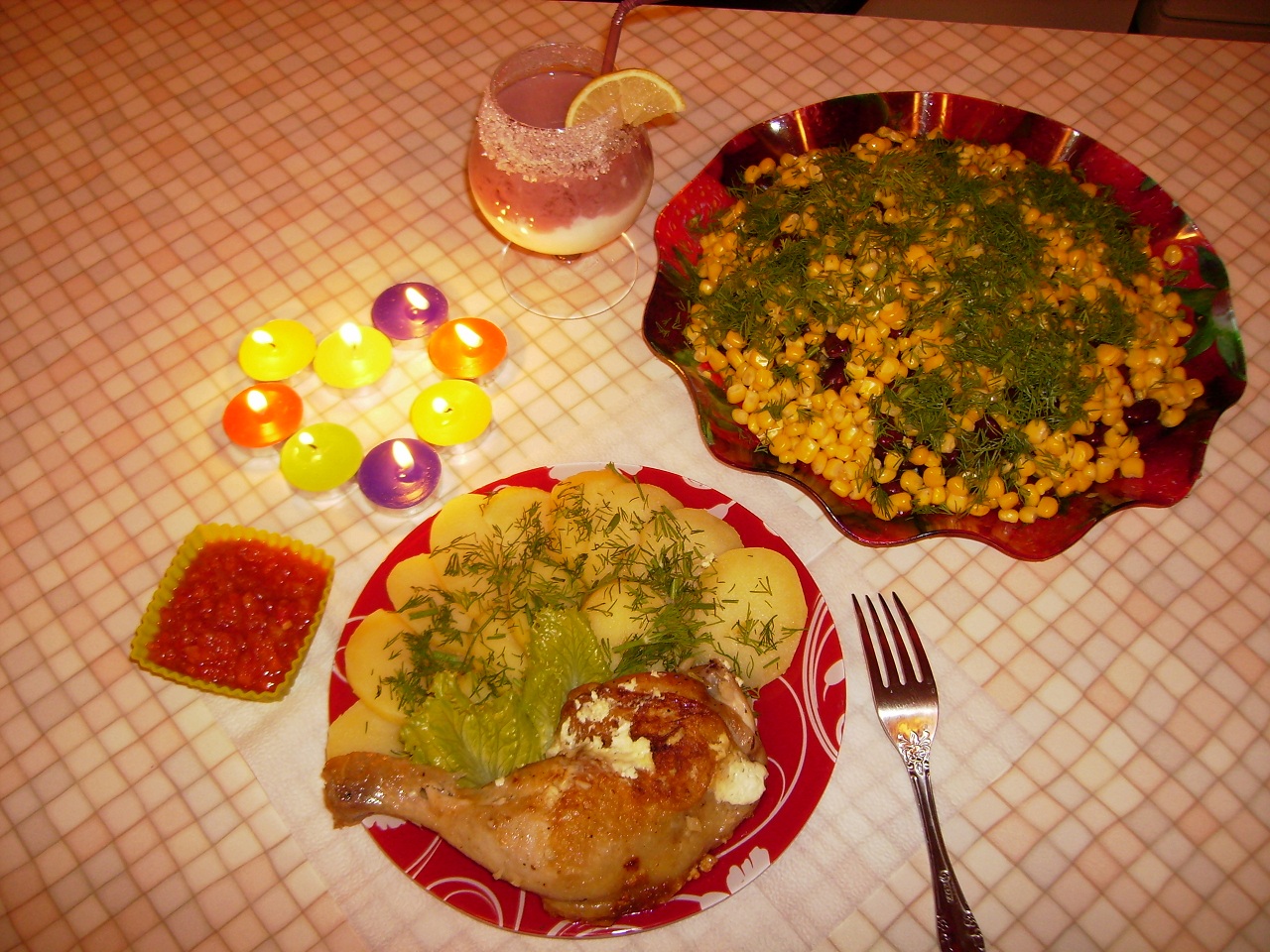 согласен, спасибо. ды и я её люблю, ругаемся конечно иногда, но всё из-за усталости в основном Ну и в солидарность с ВФ у меня вчера на ужин тоже была жаренная курочка, картошечка с тёщиной аджикой и салатик охотничий (фасолька, мяско, лучок, огурчики солёные...) ну и по старинной русской традиции ужин в шаббат при свечах зажжёных накануне вечером. Ле хаим!