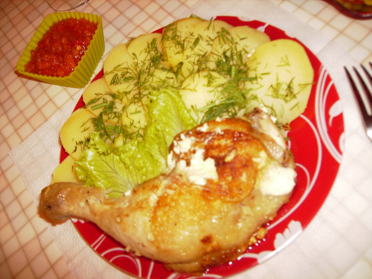 lastochka, всё достойно: хорошо приготовленный ваш любимый выходной фаст-фуд, всё кругом стерильно. Молодец! Но жареные острые крылышки, с острыми соусами и картошкой-фри запивать назло мужу чаем - не права. Иди, винись перед ним и замаливай