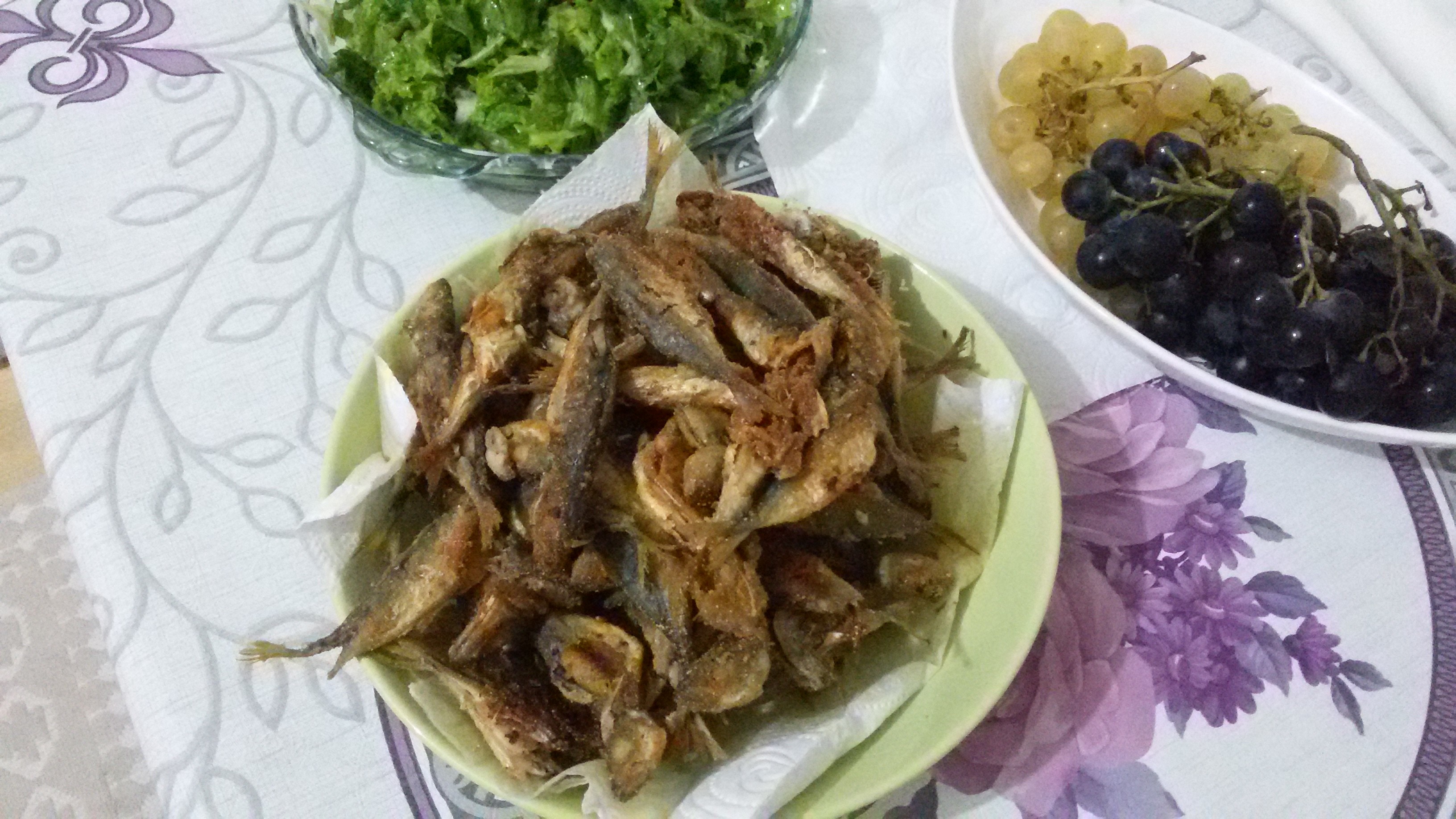 А у нас рыбка сегодняшнего улова, что за зверь - не знаю. Думаю, мелкая ставридка Вообще, сегодня базар, поэтому в доме горы овощей и фруктов. И начинается сезон корневого сельдерея, вот его натушили с овощами. Но это как закуска, а основное - рыбка жареная, с салатом