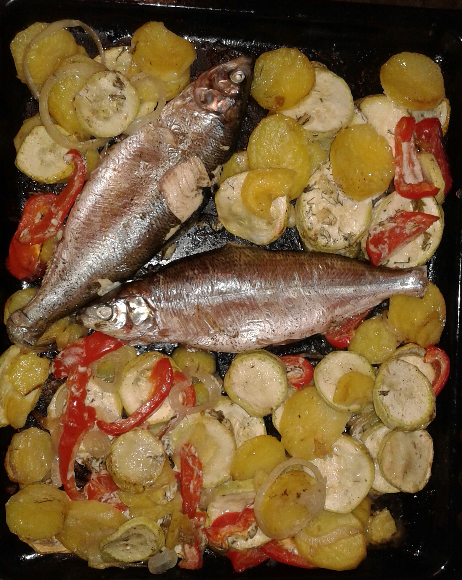 Сегодня впервые пробовала сига. Чешуя магенькая, чистится легко. Мелкие кости. Овощная подушка. В общем-то это на завтра, сегодня попробовала. И блинчики на утро)