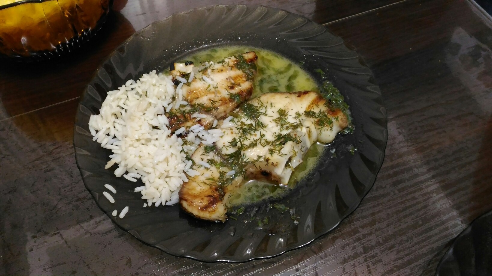 Ну ужин предполагалось рыба, филе хека в планировке, нельзя жарить рыбу, когда работаешь параллельно, сгорела. В итоге пришлось открыть банку сайры и съесть с картошкой