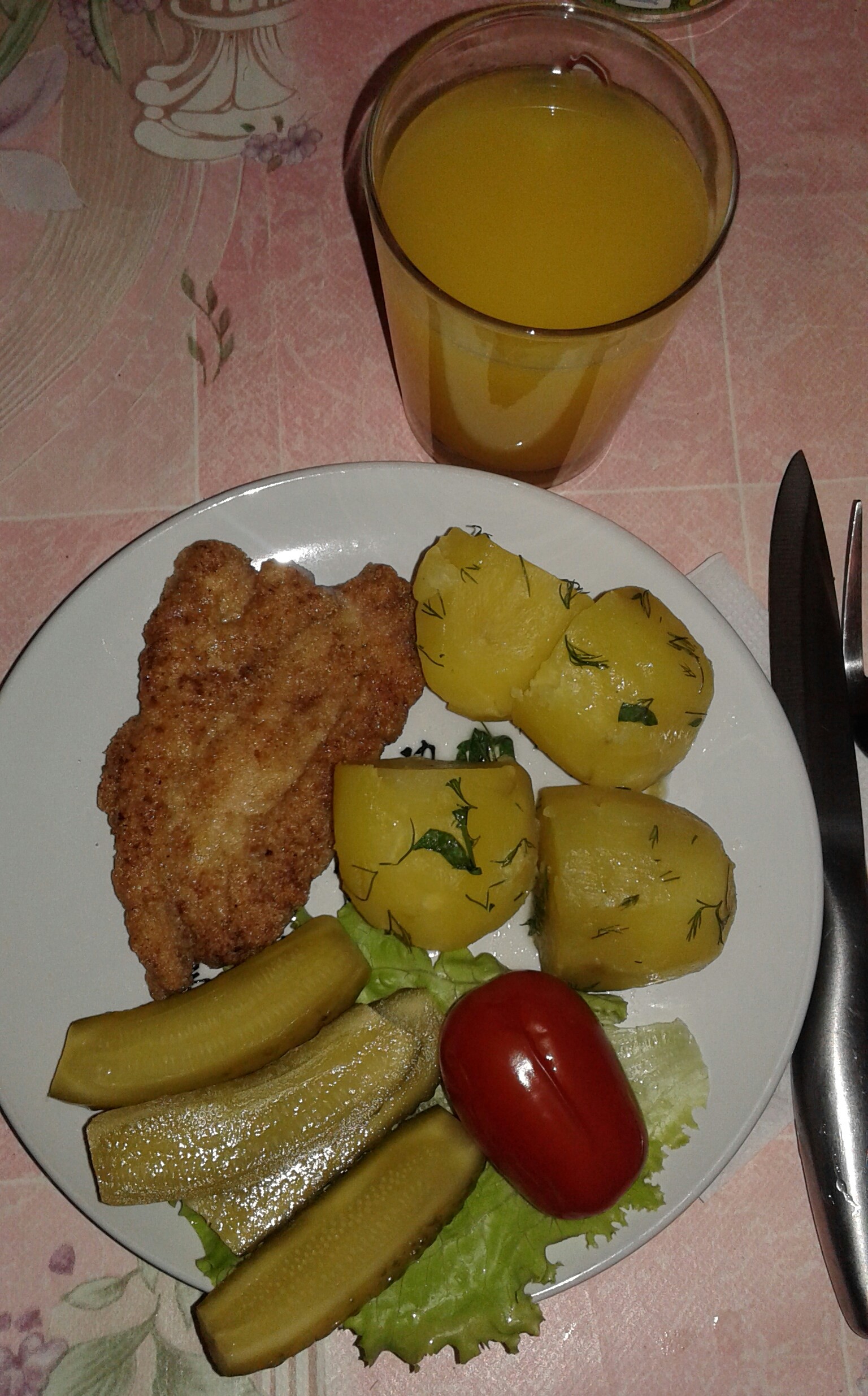 Надо было себя занять и вот: кто это будет есть?))) Салат из кальмара. Рецепт см.во вложении. Курицу мариновала в соевом+томатная паста. Тушеные овощи: баклажан+кабачок+болгарский перец. Томатный сок.