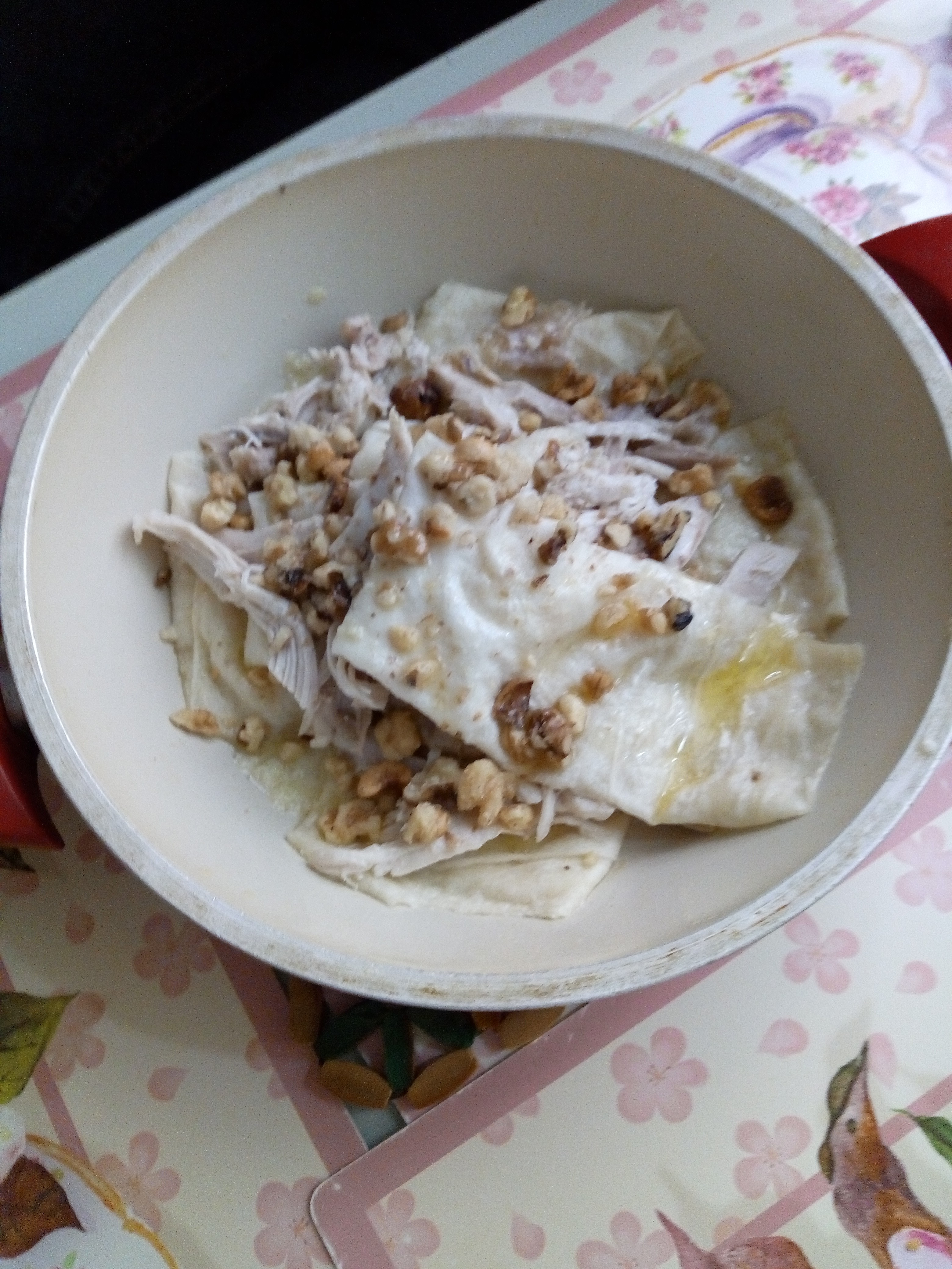 в тему про лаваш Блюдо называется бандума (одно из названий) Очень тонкий лаваш обмакивается в бульон куриный, горкой перекладывается с вареным куриным мясом (нащипать на волокна кусочки), дробленым орехом (грецкие и фундук), заливается растопленным сливочным маслом и чуть поджаривается на сковородке