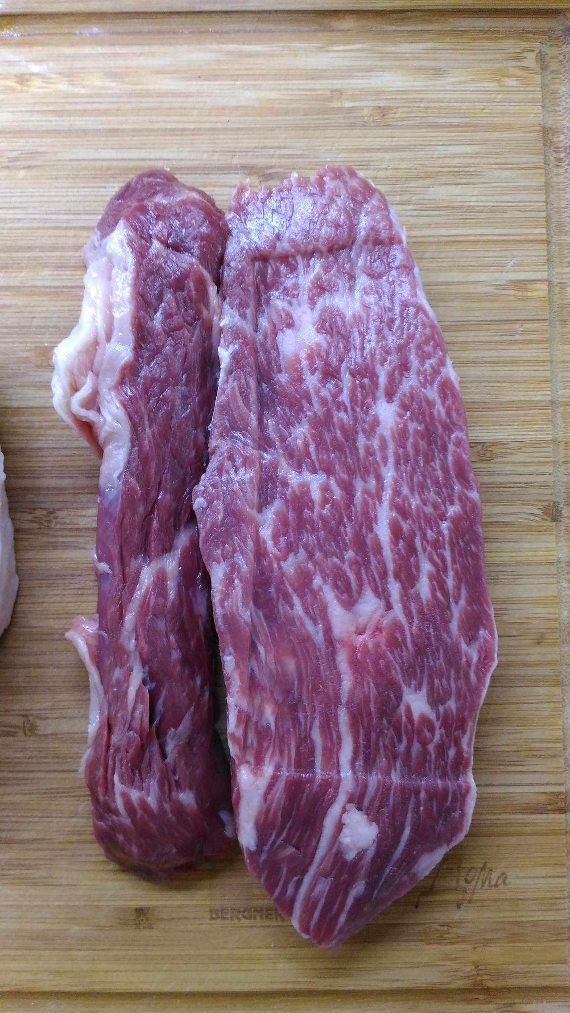 Сегодня по акции случайно купил Стейк Бавет от Мираторга. Очень понравилось, рекомендую. Замариновал в оливковом масле с розмарином и орегано, поперчил, посолил и обжарил в оливковом и сливочном масле с чесноком. После деглазировал красным сухим вином и добавил пару ложек демиглясса. Вкус просто обалденный, мясо нежное и сочное. Рекомендую в общем.