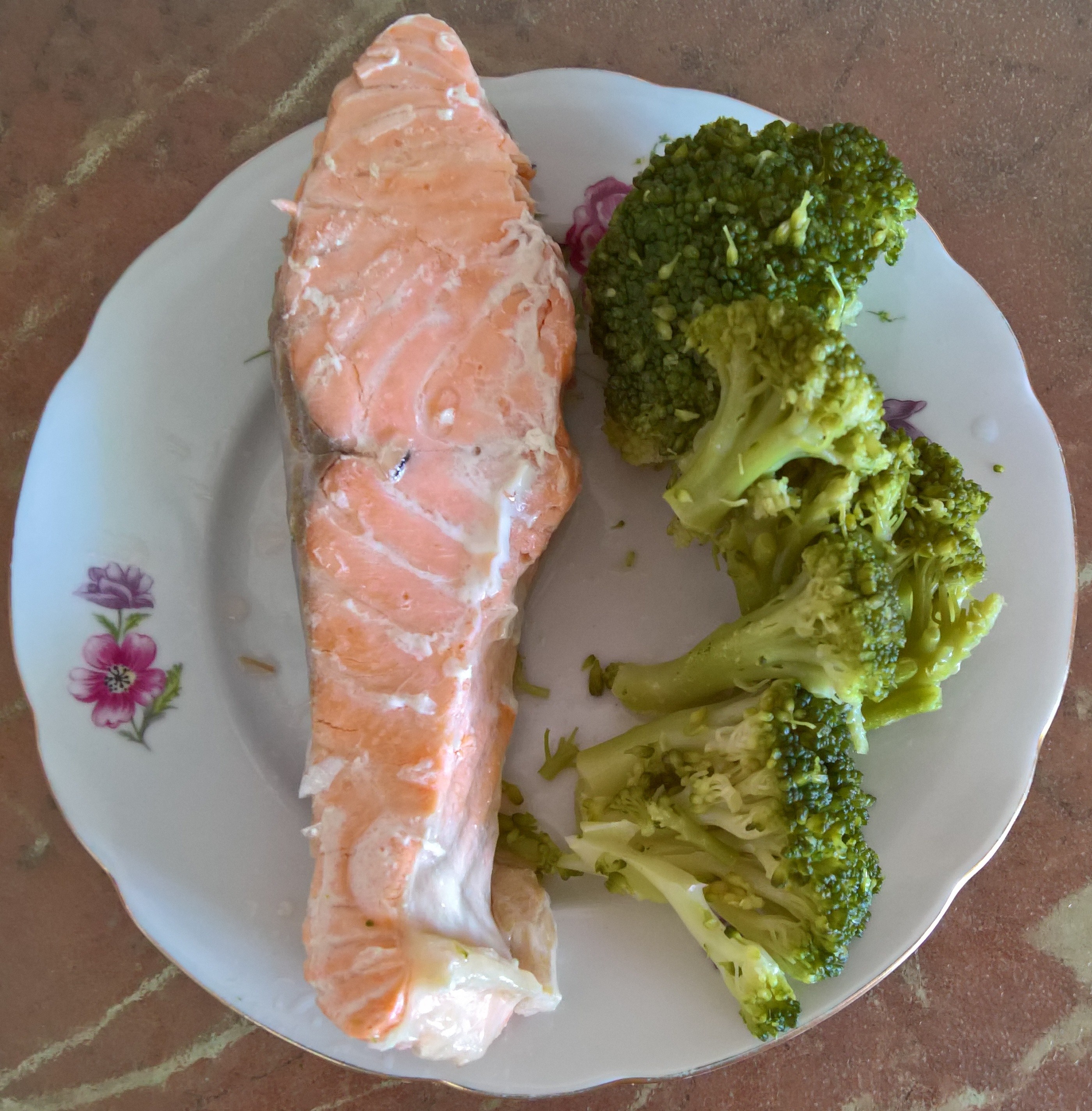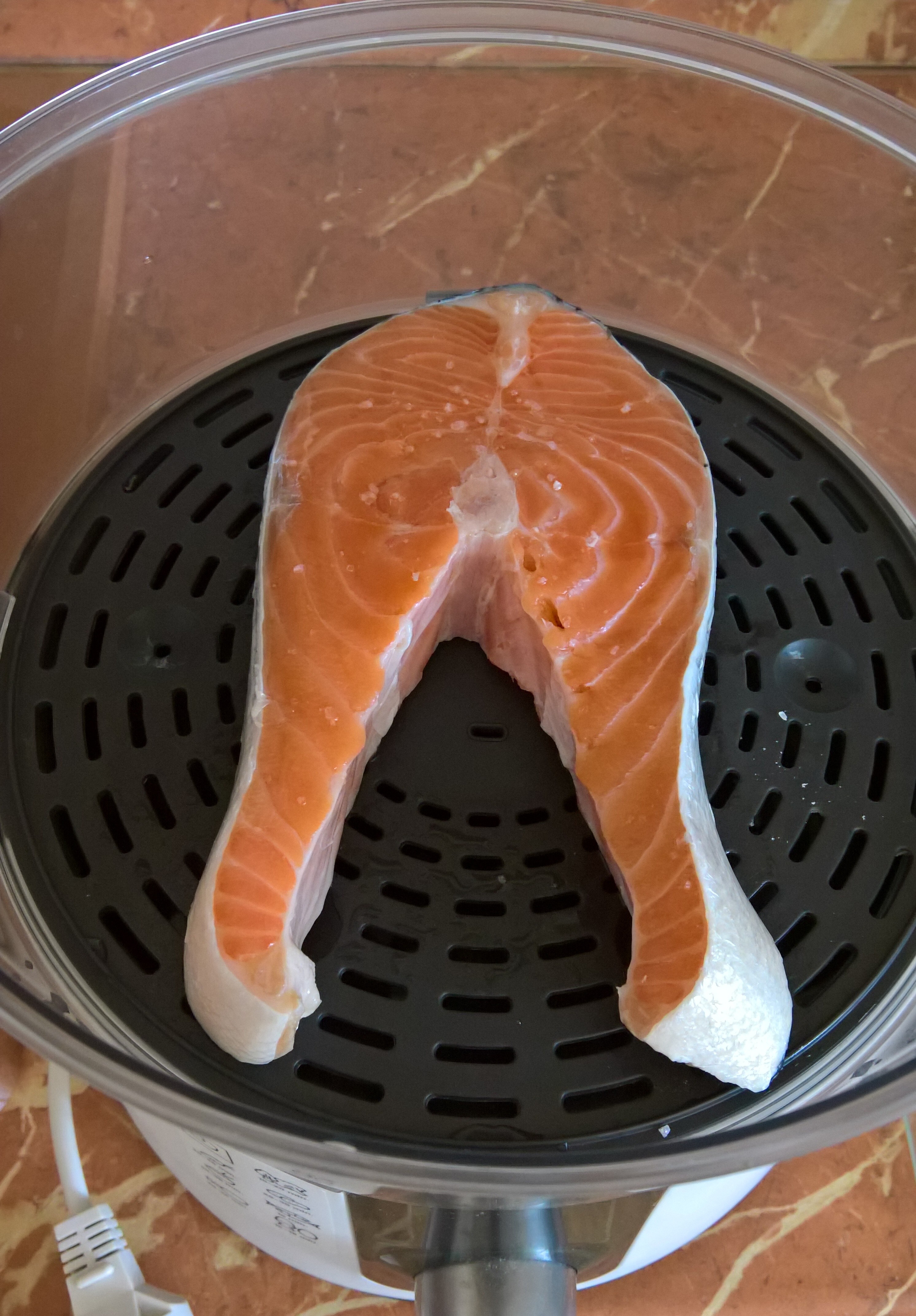 Так как в таком состоянии нахожусь постоянно (в основном от природной лени, вообще-то ), то готовлю что-нибудь, требующее минимум усилий. Типа, семга и брокколи в пароварке: