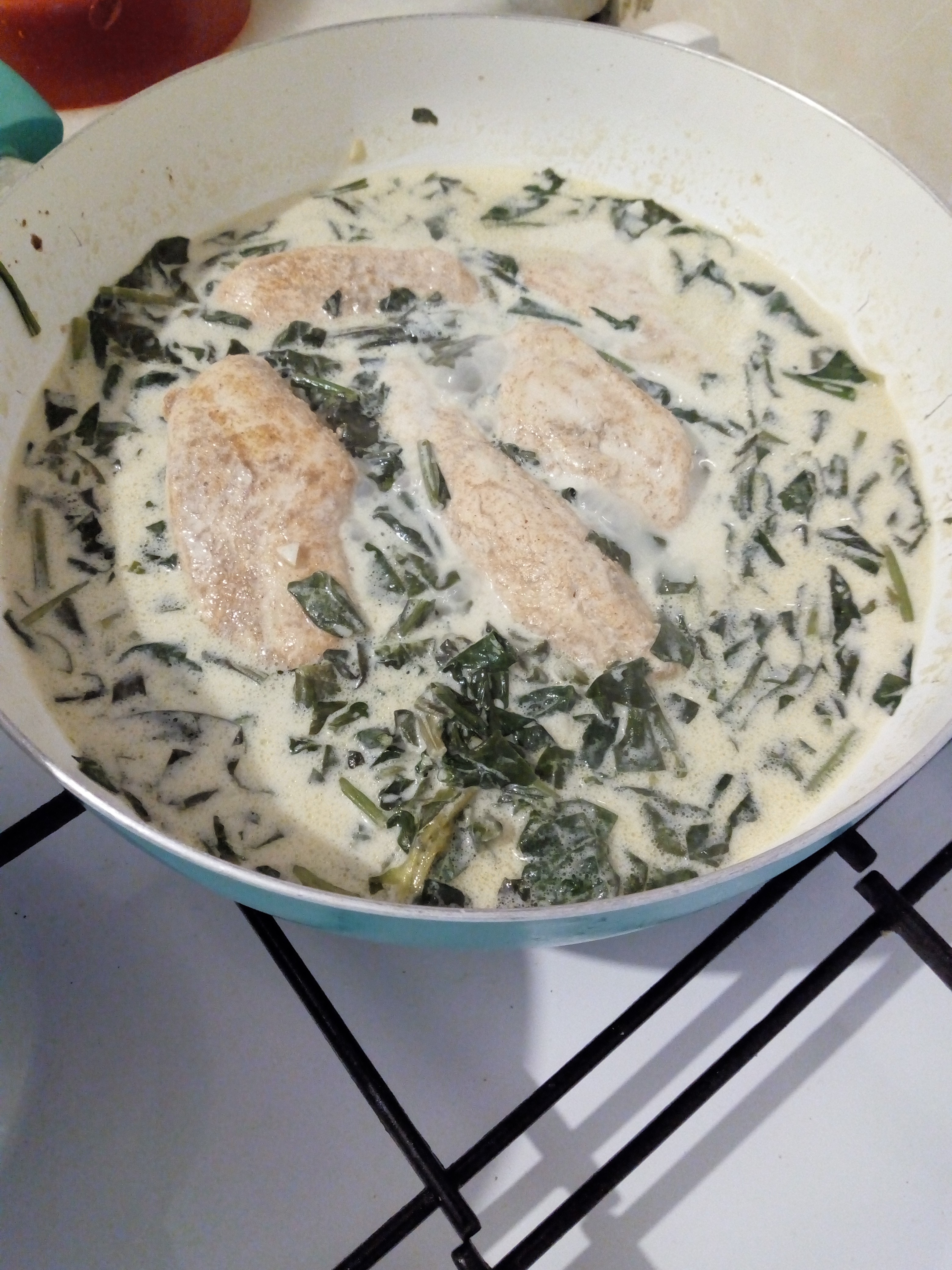 У меня сегодня пюре картофельное и грудки куриные в сливочно-шпинатном соусе. Вместо сливок я мягкий творожный сыр (лабне, он типа маскарпоне, но чуть острее, делается из йогурта) в соус положила, экспериментирую. Вкусно! И легкий куриный суп с овощами.