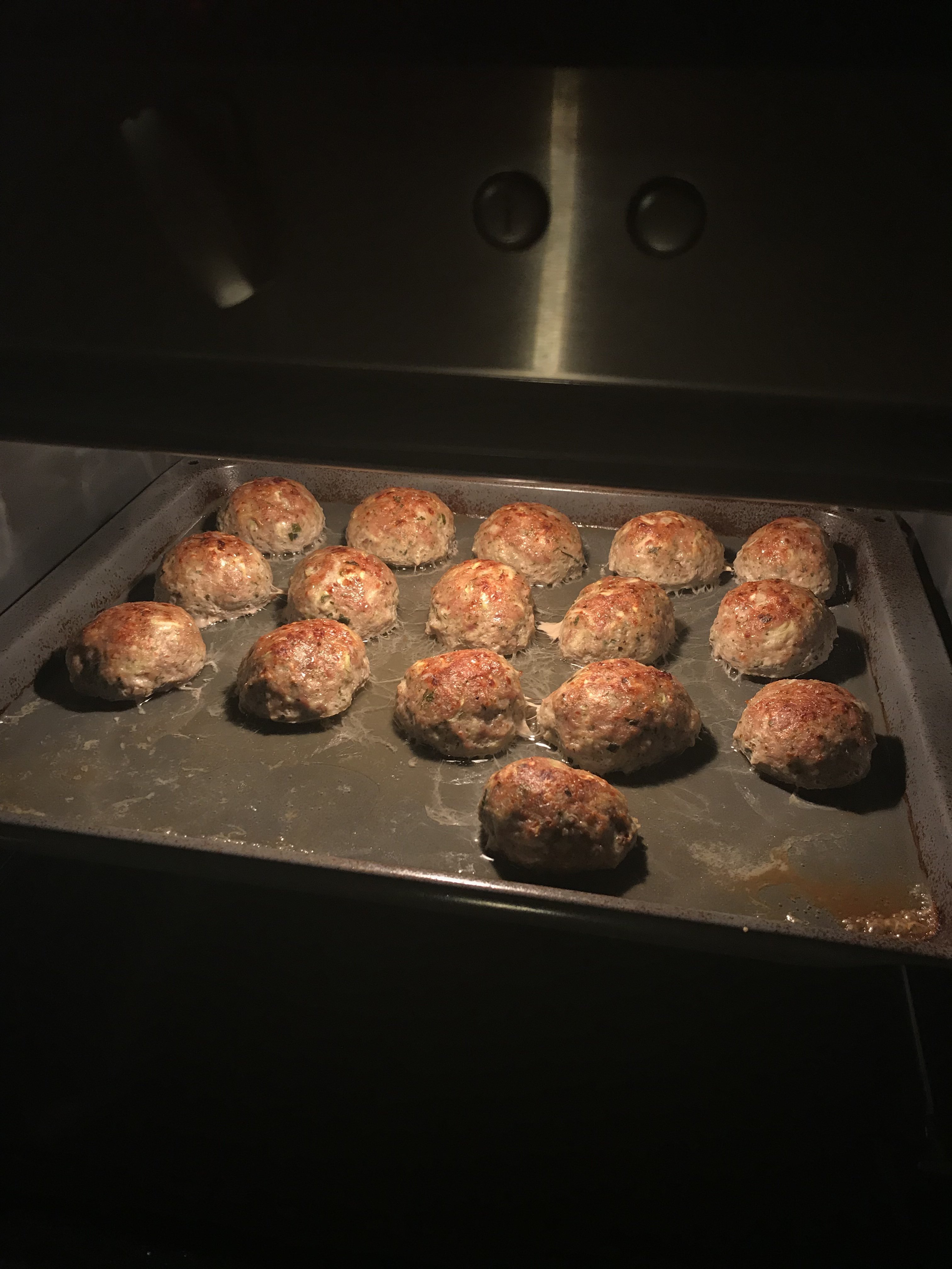 Котлеты: фарш мяса индейки, кабачок, петрушка, укроп, лук зелёный, соль, перец чёрный, мускатный орех, базилик. С салатом из свежих овощей.