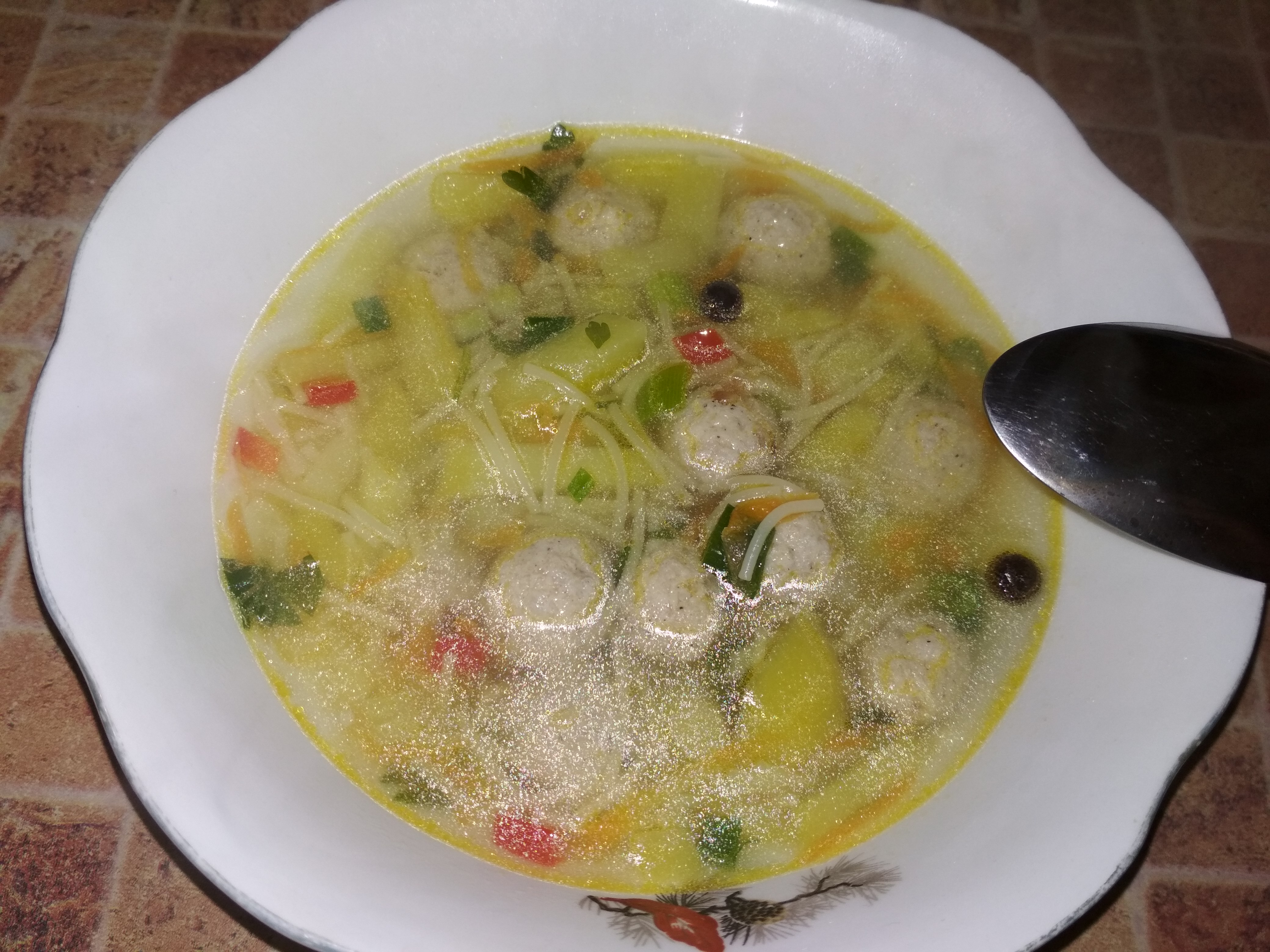 Суп с фрикадельками. Специально для @Дионисий сфотографировала свою кастрюльку. По мужским меркам моя кастрюля игрушечная) а нам хватает на два дня