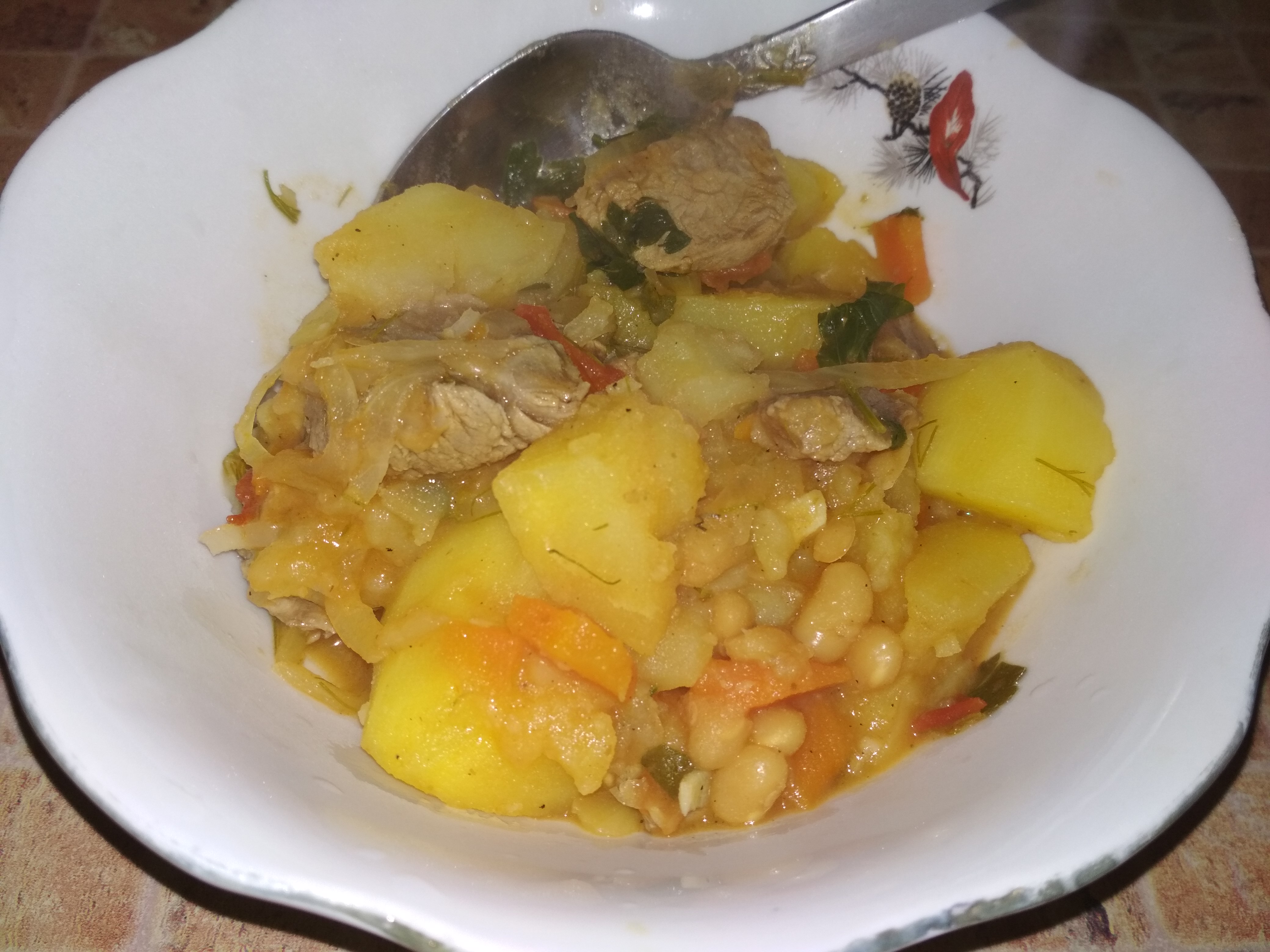 Отварила баранину и сварила борщ (вместо капусты использовала салат)) На второе жаркое с бараниной и овощами