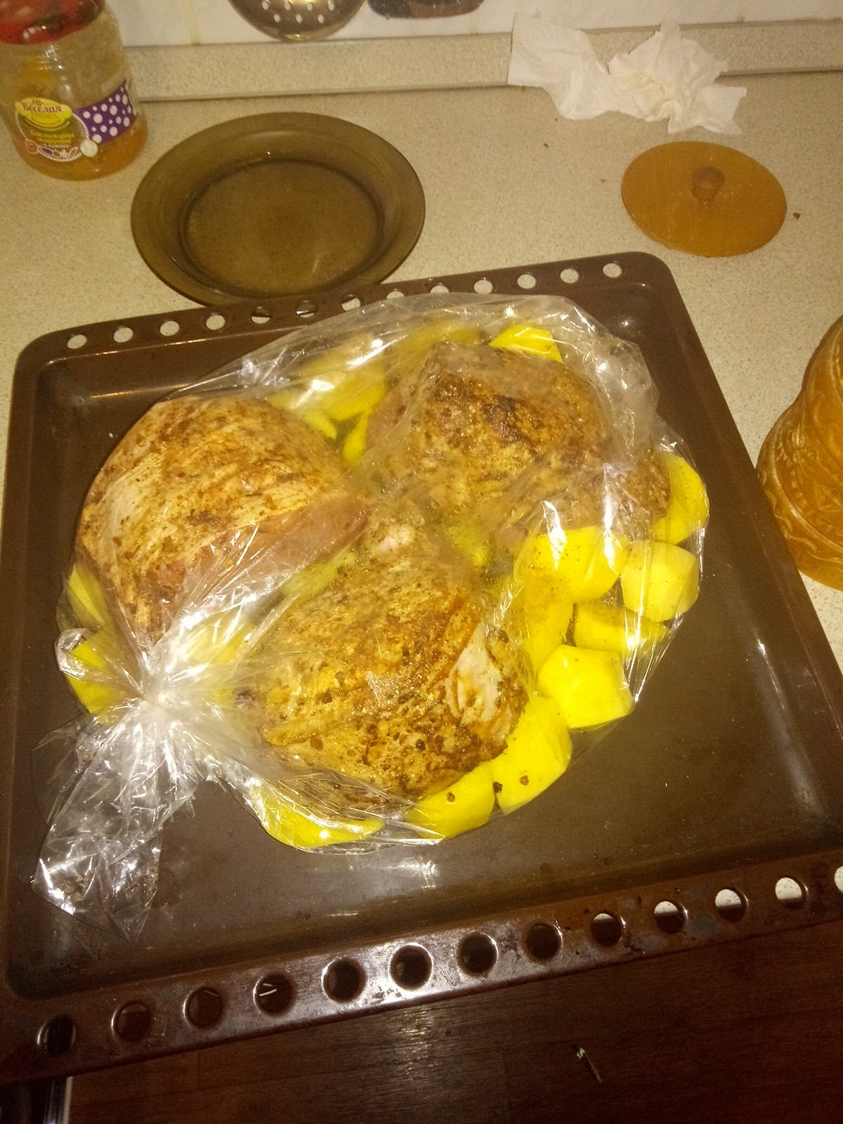 Пока не знаю что, но знаю из чего: Запеку наверное в рукаве с кортохой Отправил в духовку. Надеюсь что-нибудь да получится - иначе жена останется голодной (в смысле ужинать будет нечем)