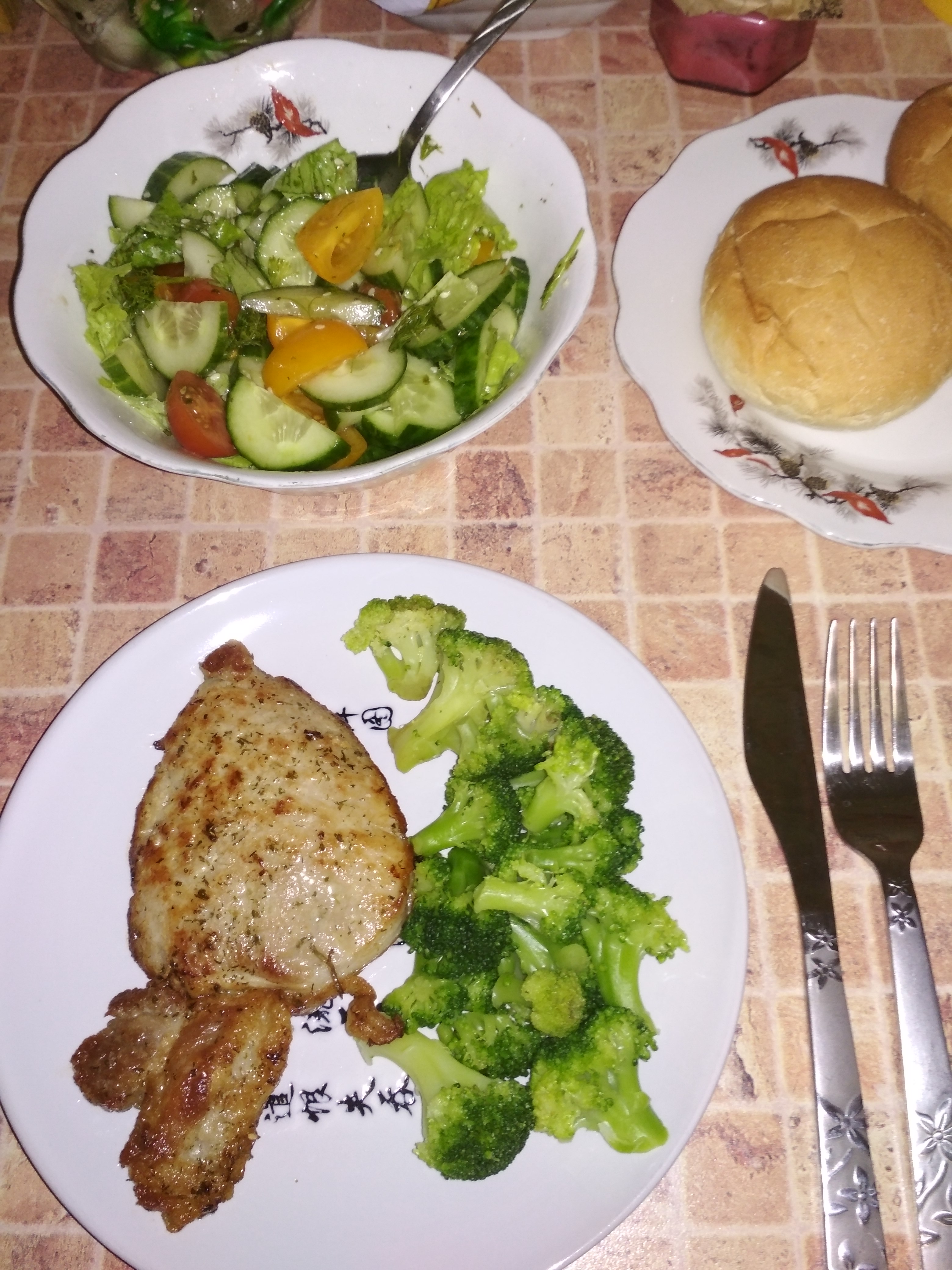 На ужин ничего примечательного: пюре и тефтели, салат. А вот на завтрак завтрашний приготовила впервые ачму. Если по-простому сказать- что-нибудь типа осетинского пирога только без заморочек на тесто. Готовится из лаваша. Начинка творог+сыр+зелень+соль+перец. Слои лаваша пропитываются молочно-яичной смесью.