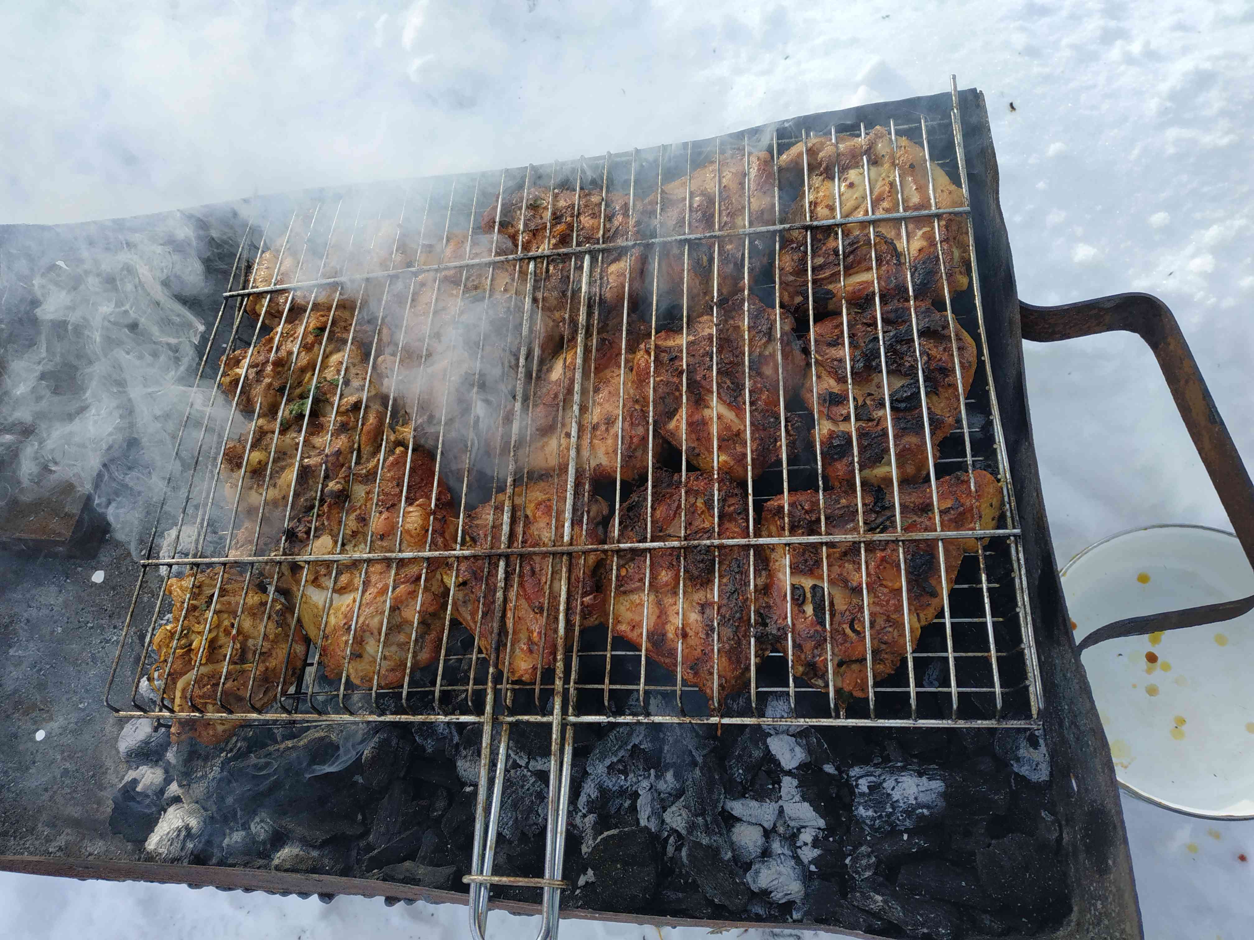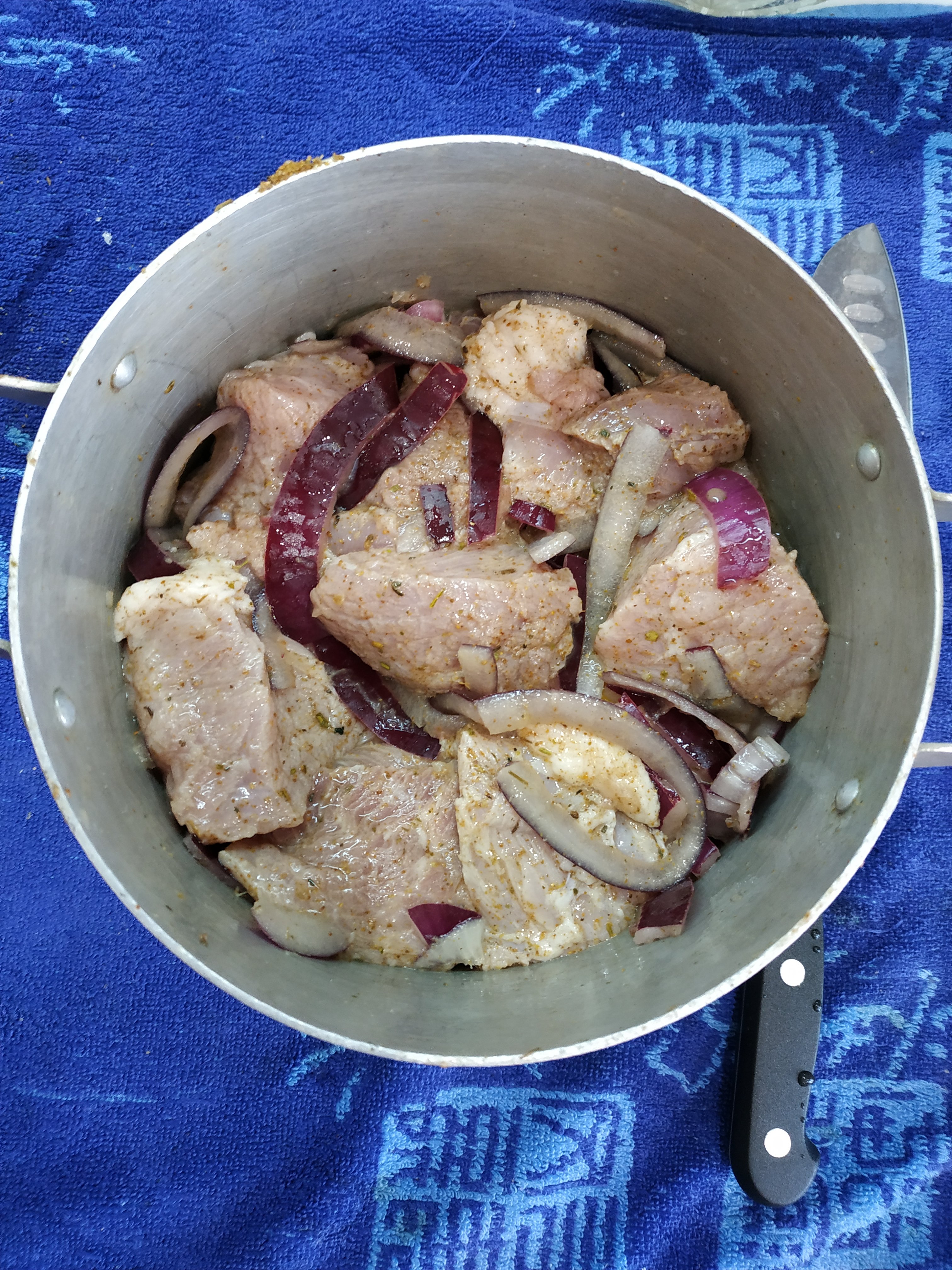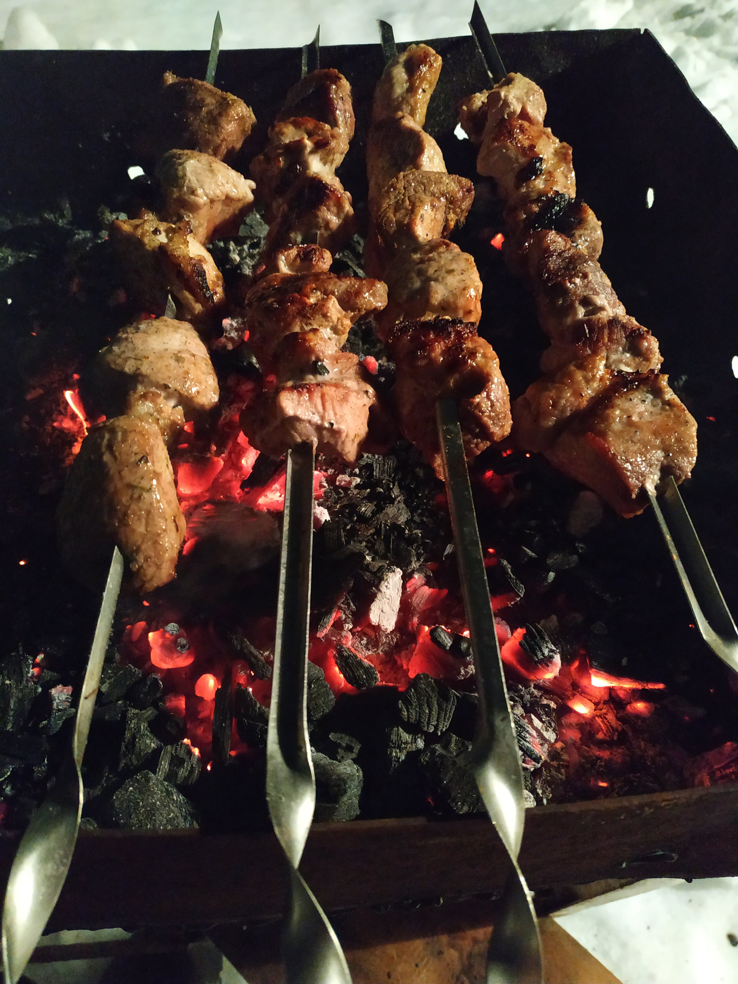 Сегодня будет на ужин. Шашлык, свежий воздух, домашнее Терновое вино Фиолетовый лук, приправа для шашлыка, пол лимона, не сплю. После того как пожариться то же не соли. Наверное хватает вкуса лимона. вечер