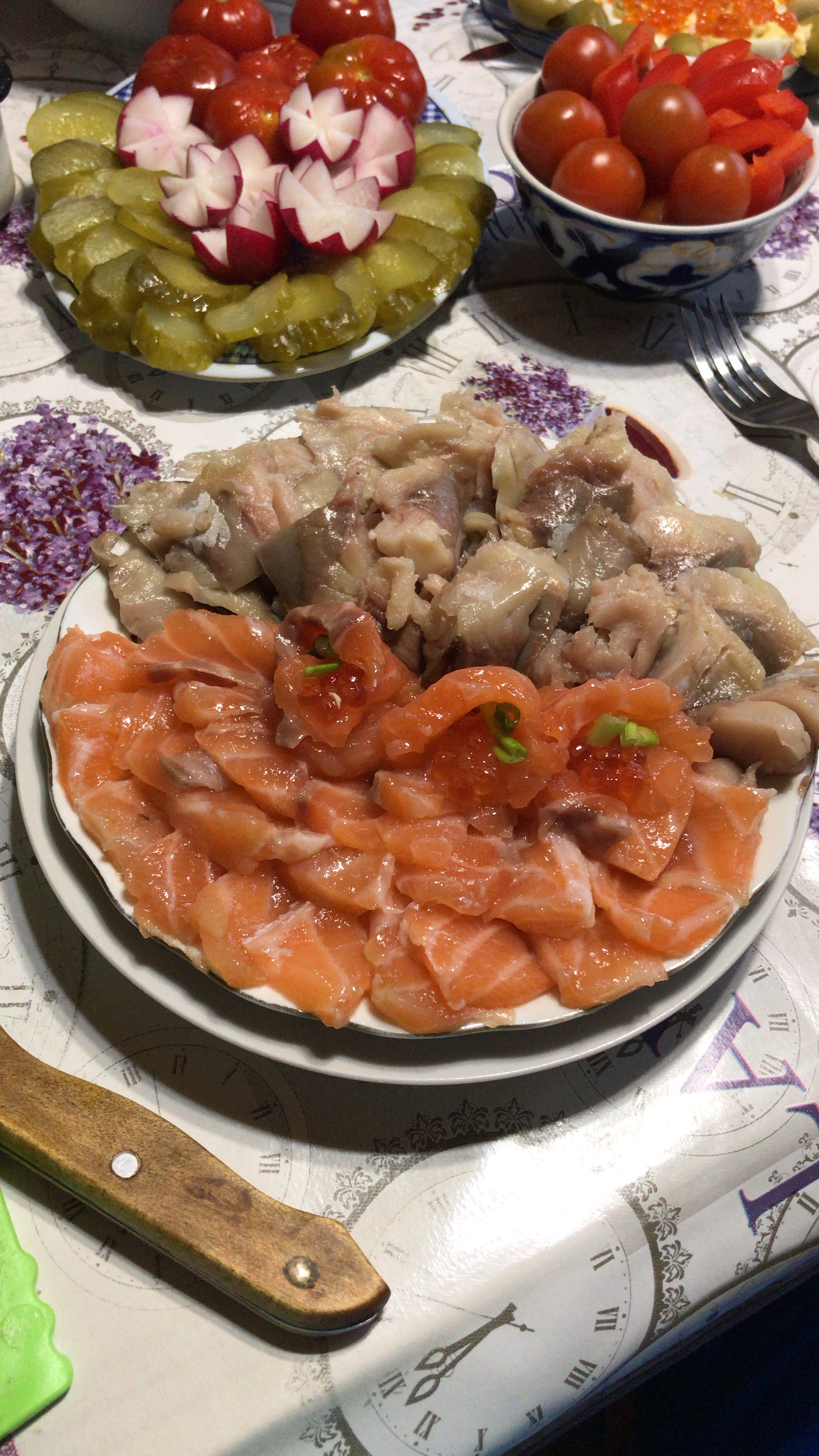 Разбавим Гурманов простой деревенской кухней))) У свекрови вчера был ДР, обед плавно перешёл в ужин. На горячее пюре и окорочка, напитки.