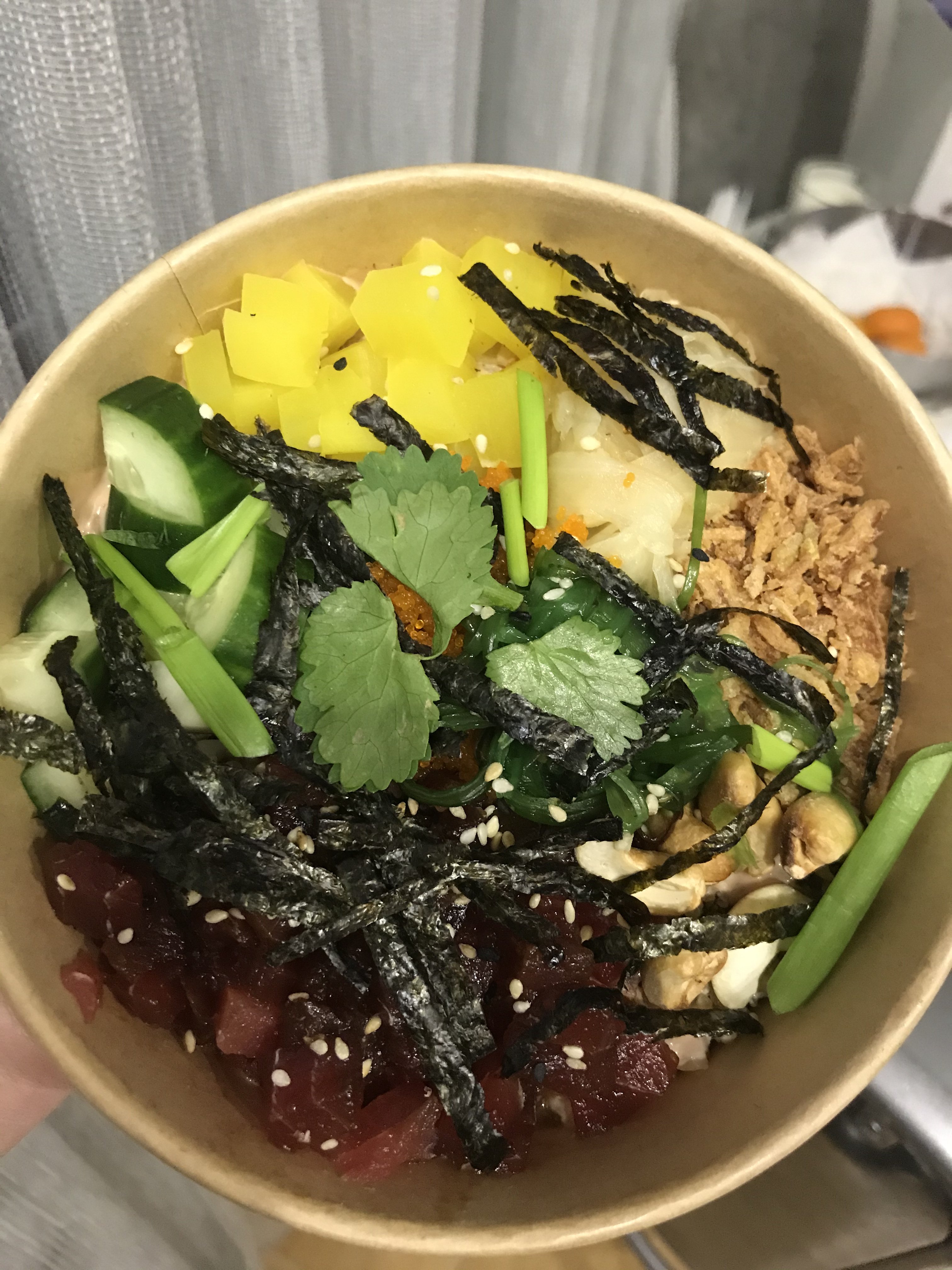 Два дня назад в Инстаграмм у еды выиграла сертификат денежный, вчера потратила) Том Ям, поке, роллы, пицца, фри.