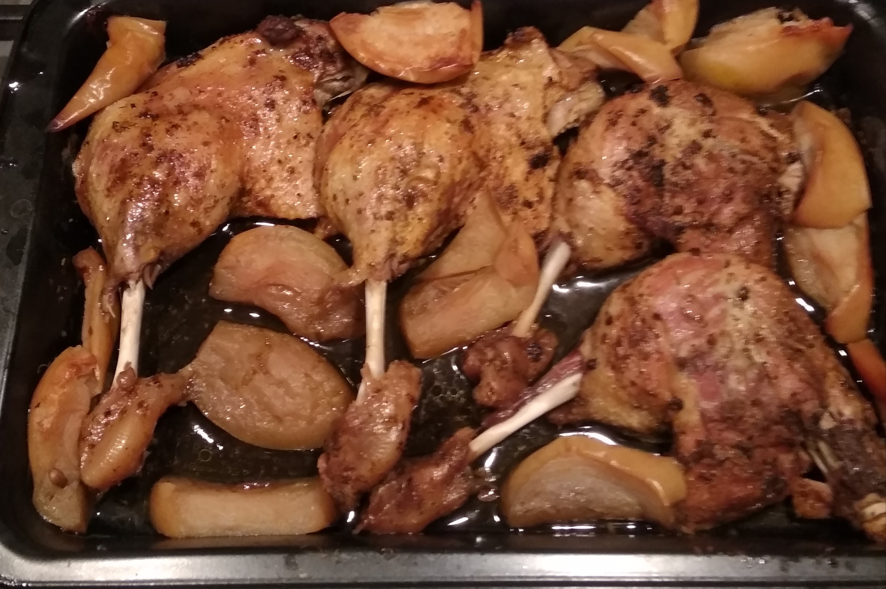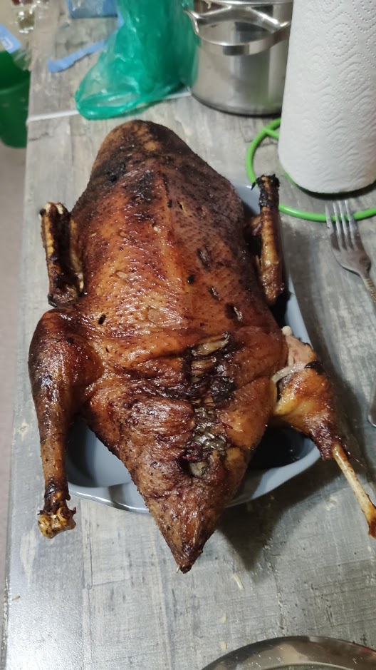 Утка конечно-вещь ! Зять мой знатно ее готовит с яблоками . Но вот сил ее поесть не хватило . Скоро поедем к ним с надеждой что еще осталось хоть немного