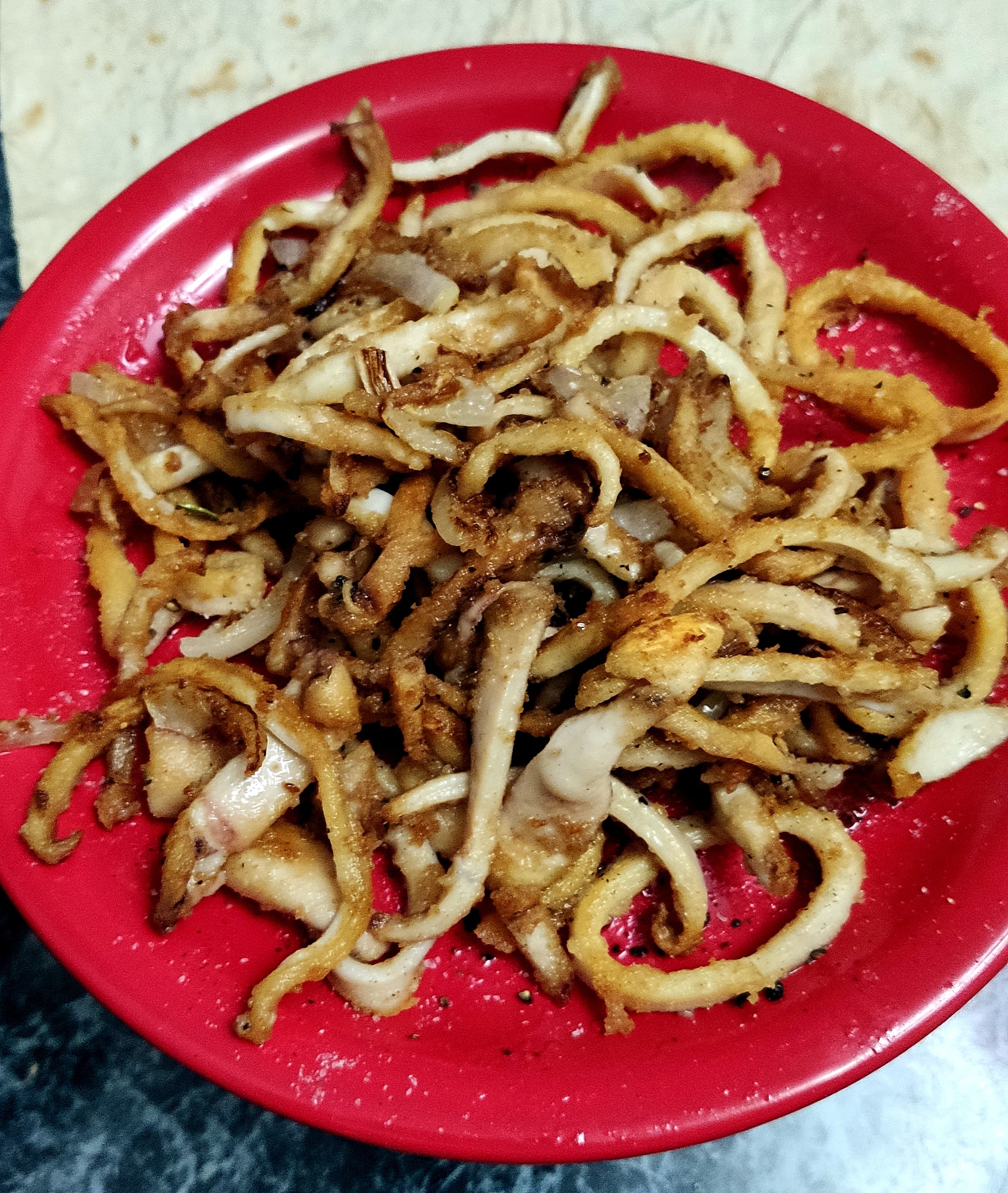 Сегодня на ярмарке видел на Возрождения. ну когда то сам ловил с плит с территории ЗКО Здравствуйте робята ! Для тех кто еще не ужинал. Решил вот поделиться рецептом. Дело в том что на днях делал типа шаурмы с мясом утки и грибами жареными+зелень. Сегодня же пришла в голову безумная мысль совместить не сочетаемое. И так .Мелко капусту-лук- туда же в меру майонез -зелень. Кальмар 3 минуты отварить -почистить и пожарить кольцами\полосками в панировке .Посолить-поперчить . Все это на лаваш и скрутить. Неожидано вкусно оказалось ! Пробуйте !Не сложно и быстро.
