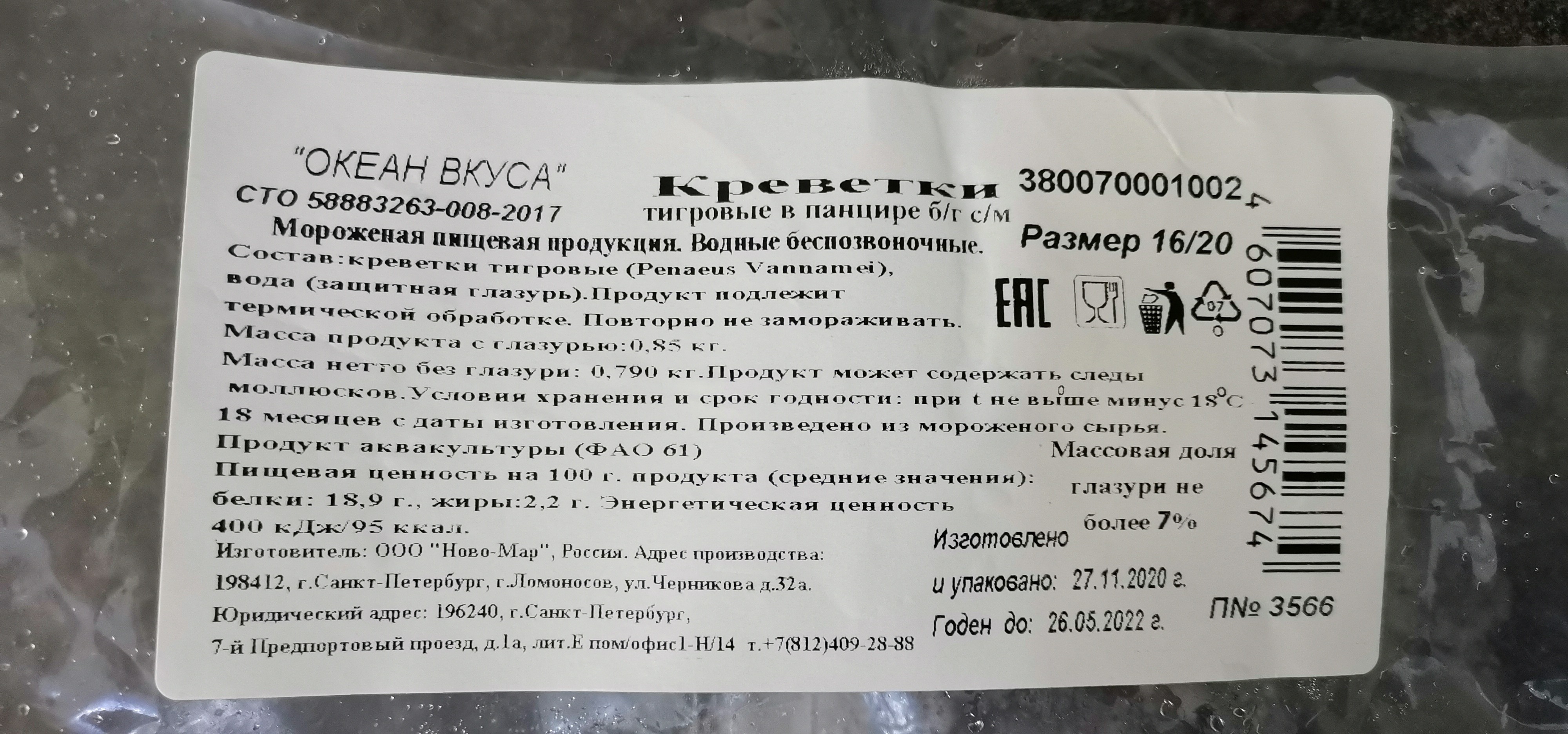 Раз уж тут морская тематика, здесь отпишусь. Вдруг кто запланирует креветок к ужину купить. Купил на днях в Метро - ~20% недовес: