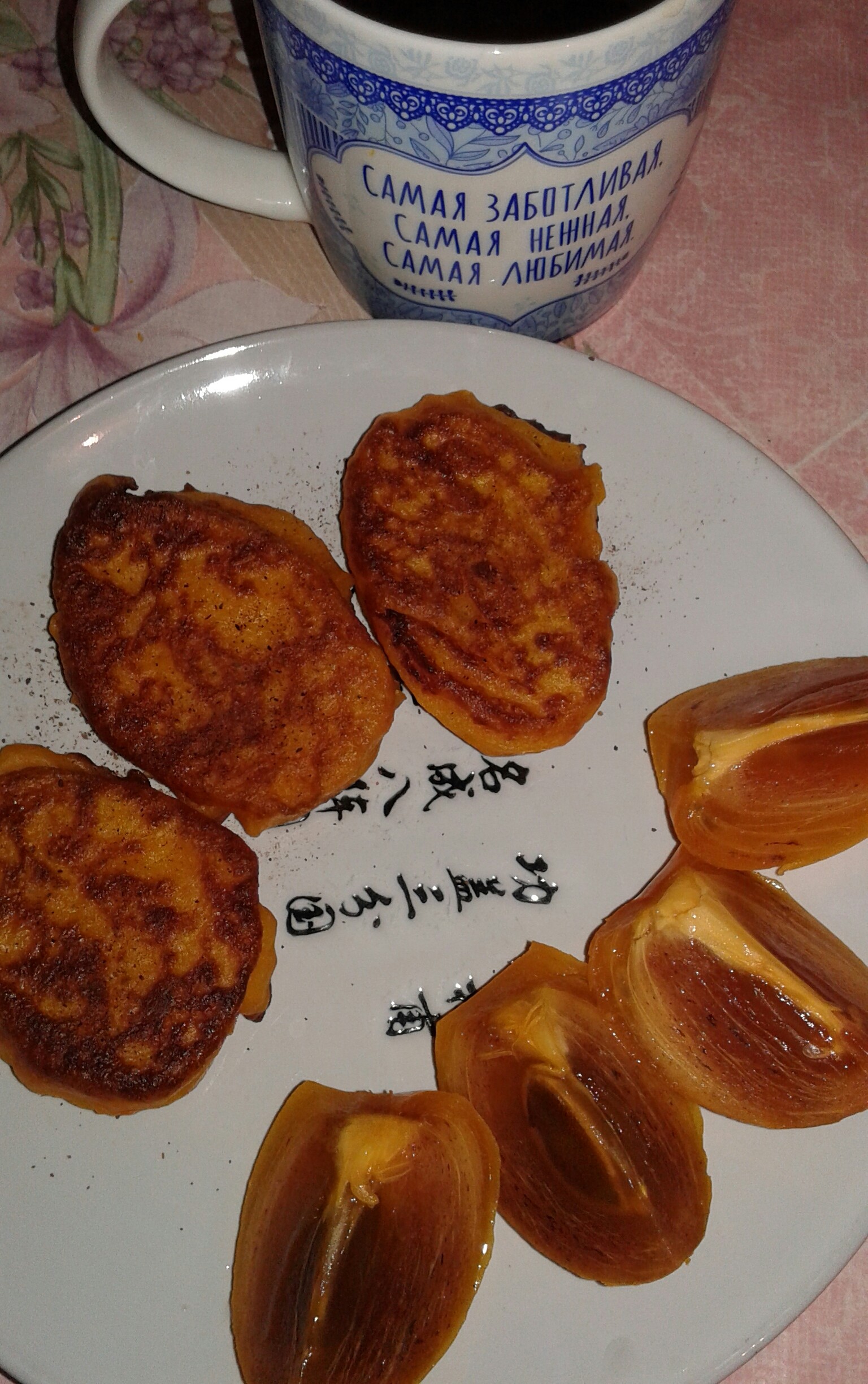 Завалялась у меня тыковка, решила приготовить оладьи. Тыкву почистила, освободила от семян. Порезала кусочками, положила в небольшую кастрюлю. Туда же добавила горсть кураги, 1 морковку и 1 яблоко, порезанные на куски. После закипания добавила 1 ст ложку сахара. Проварила минут 10. Воду слила, с помощью блендера сделала пюре. Добавила 1 яйцо и муки. Жарить оладьи на масле. Вкусный и полезный завтрак готов Оранжевого всем настроения!