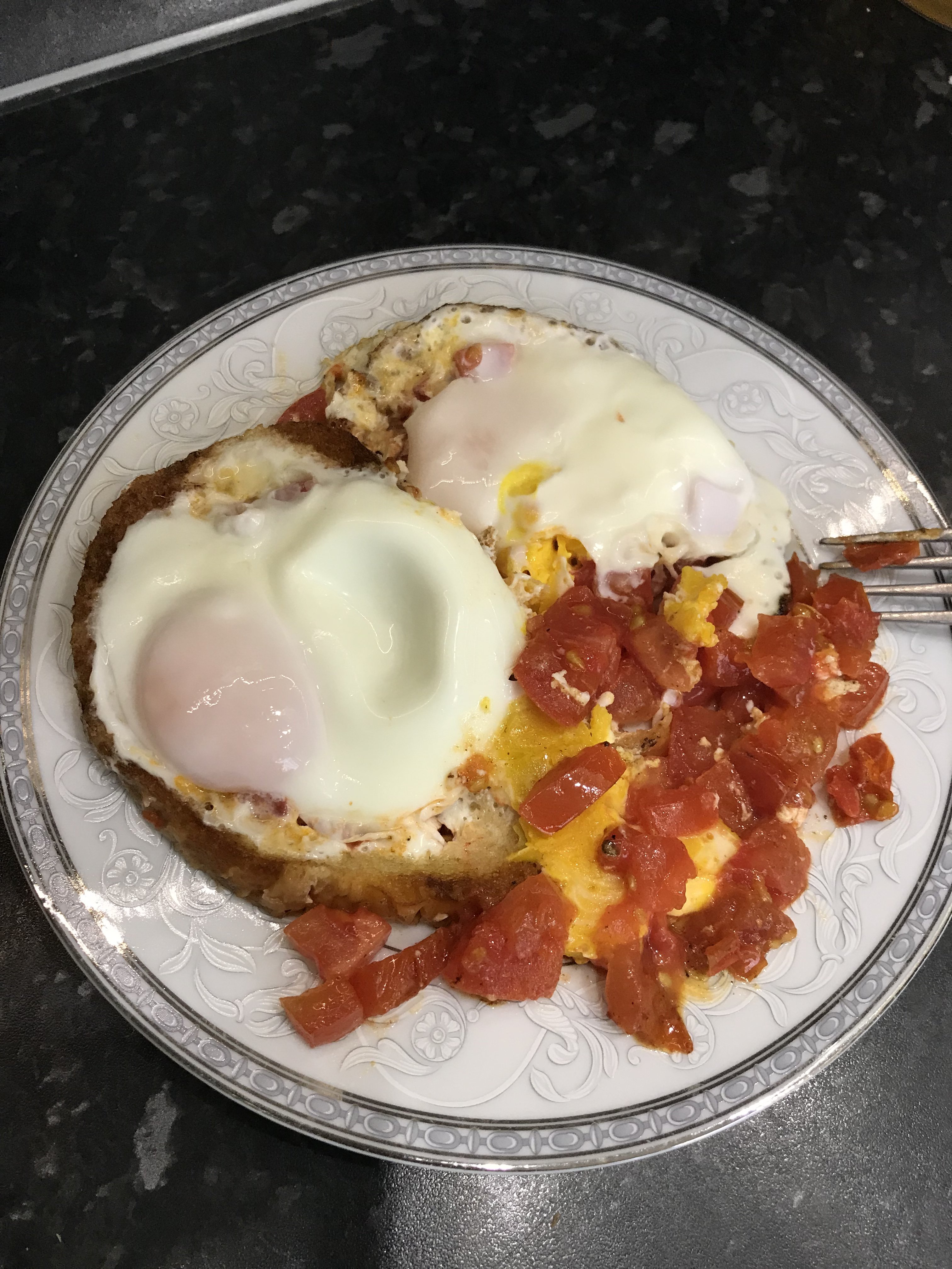 Для пиццы вчера много помидоров нарезала, надо было использовать. Дочь лаваш не прикрыла, засох(( решила в молочно-яичную смесь поломать лаваш и залила ею помидоры. Вкусный сытный омлет получился.