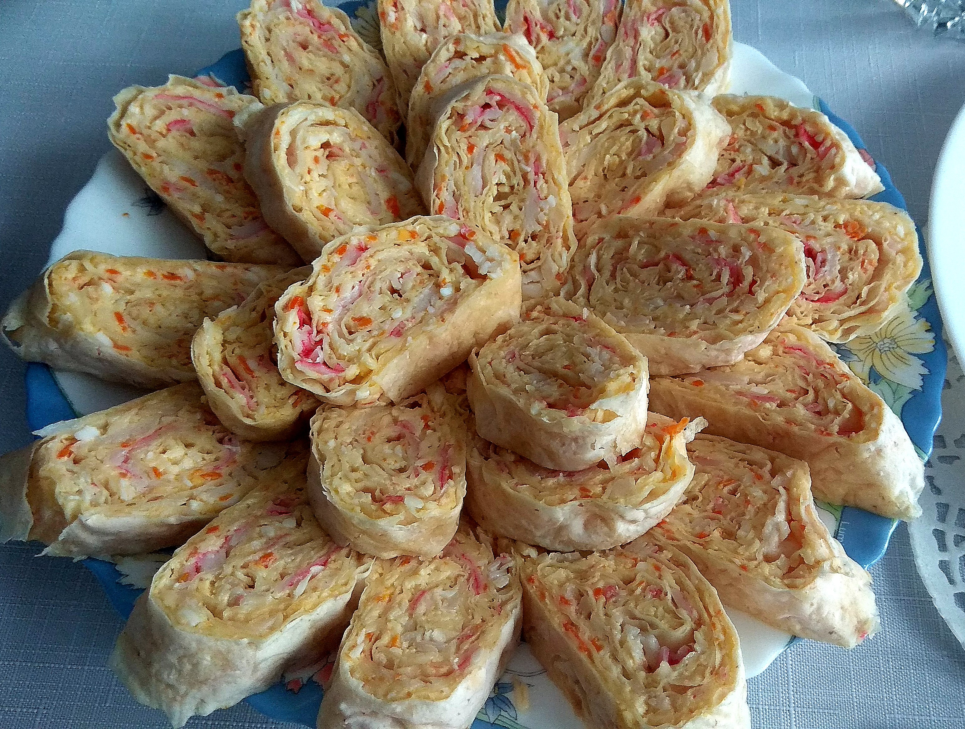 Это типа такого как на фото ? Ох и вкусная же штука ! Там еще морковь вареная-крабовое мясо- яйца вареные- майонез -чесночок -зелень ! Мммм...