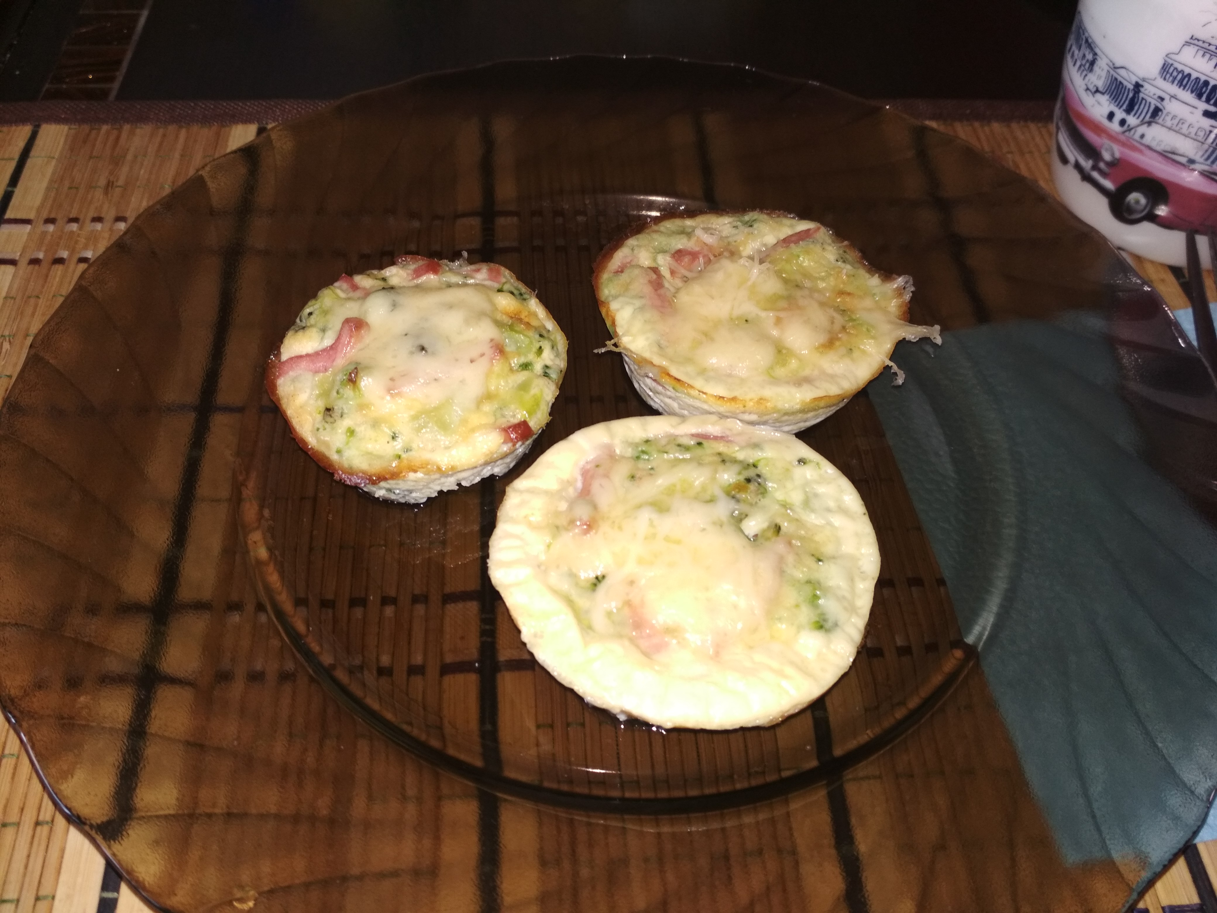 Яичные маффины или тот же омлет в ином исполнении)) оставалась одна сосиска, нашла в заморозке брокколи и вуаля))