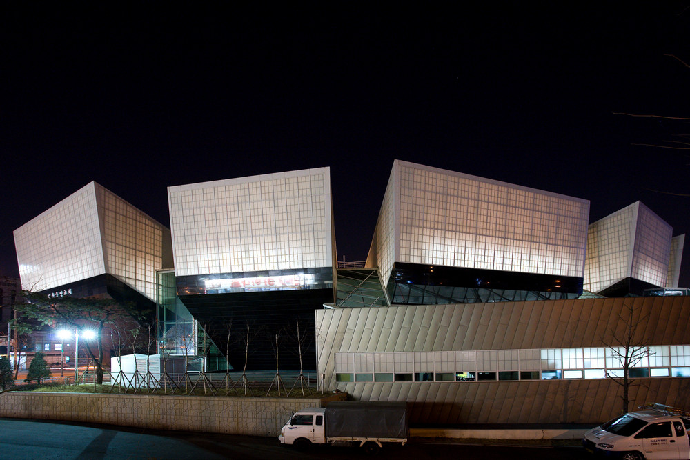 Наткнулся на картинку, вспомнил про эту тему. Один народ - на севере верные, преданные вождю и чистые душой, живущие в экологической идиллии, а на юге злые убогие капиталистические варвары ) А наткнулся я на примеры архитектуры в жадной загнивающей Южной Корее