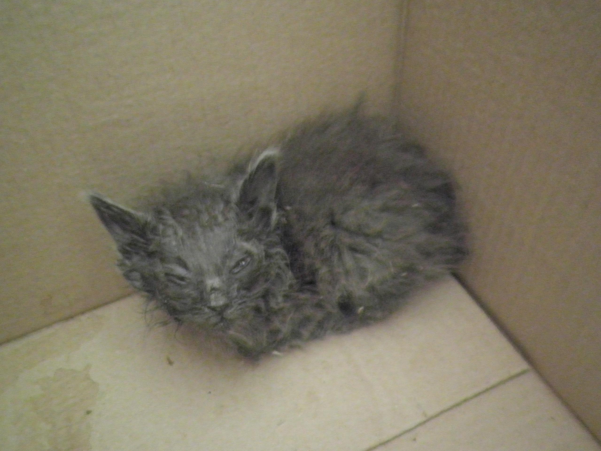 Сегодня по дороге на работу в Ворошиловском районе подобрала котенка (думаю, ему около месяца), просто потому что не смогла пройти мимо - глазки затекли и запеклись, почти не видит, кричит. Видимо, мама-кошка давно им не занималась. Слабенький, спит или просто сидит, хотя и пытается вырываться с рук. Отнесла в ближайший веткабинет, чтобы хоть чем-то помогли, но там девушка была занята на операции. У котенка, сказала, инфекция. Сейчас он у меня на работе в коробке, домой взять нет возможности - у мужа аллергия на них. Вечером думаю сносить к нашему ветеринару, чтобы поточнее понять, как его полечить, но держать у себя не смогу! Единственный вариант - полечить разок, помыть и отвезти обратно. Или в Покровитель. Максимум - пристрою на ночь, и то не факт. Прошу помощи. Фото будет позже. Котенок хорошенький, по-моему, девочка, дымчато-серого цвета.