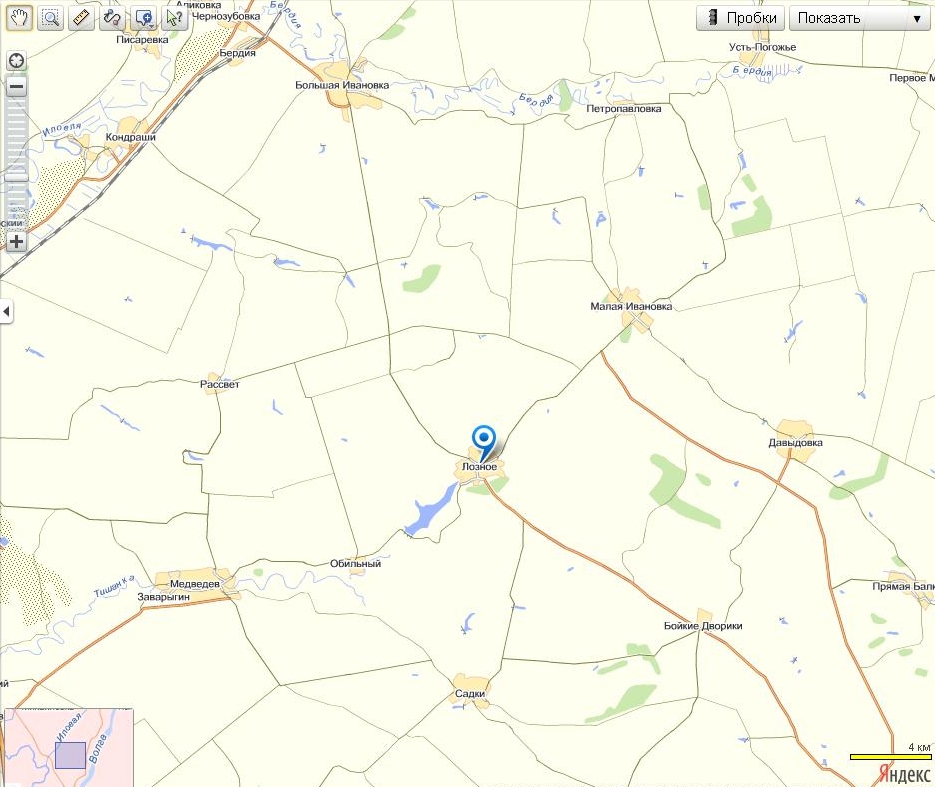 красным обвел место поворота с дороги Б-Ивановка-Лозное.