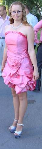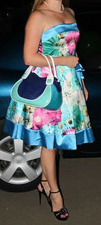 Не поняла такой строгой зависимости именно этого платья от именно этих туфлей. ИМХО, гавкнуть хоцца на это платье. Если б оно было без атласных синих полос, уже было бы терпимее и менее аляписто. Но, повторюсь, это на мой вкус - я не люблю, когда много всего и в глазах рябит. Лучше меньше, да лучше.