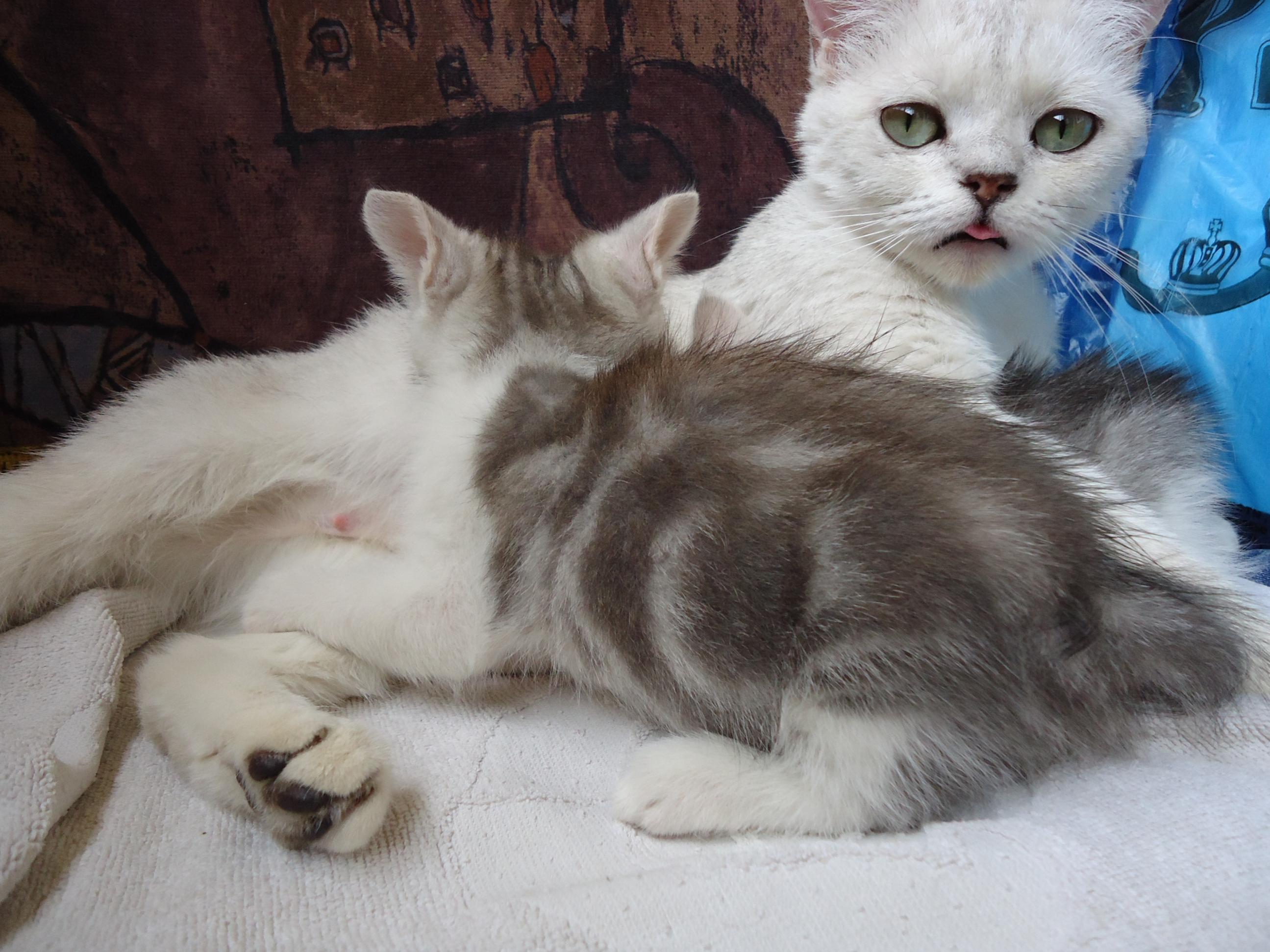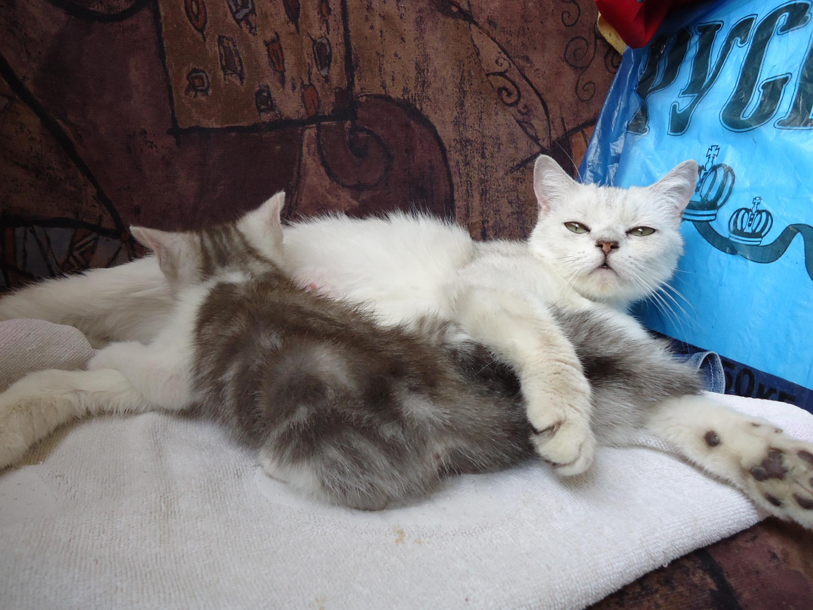 Красавица британка окрас серебристая шиншила, была подброшена во двор с двумя котятками. Но дворовая жизнь не для домашней кисы, заболели котята, а потом и мамка. Сейчас Боня, так назвали кошку, на передержке, но девушке, которая их взяла, тяжело лечить всех сразу, у нее много животных и маленький ребенок. Котята идут на поправку, ходят в лоточек исправно. Один котенок с хорошим аппетитом, второй - пока ест из шприца и сосет мамку. Посмотрите, может быть это ваш котенок или Боня легла на сердце? Еще неделя и они будут здоровы, просто нужно немного внимания и желание вылечит малыша! Звоните 89044157774 Алена