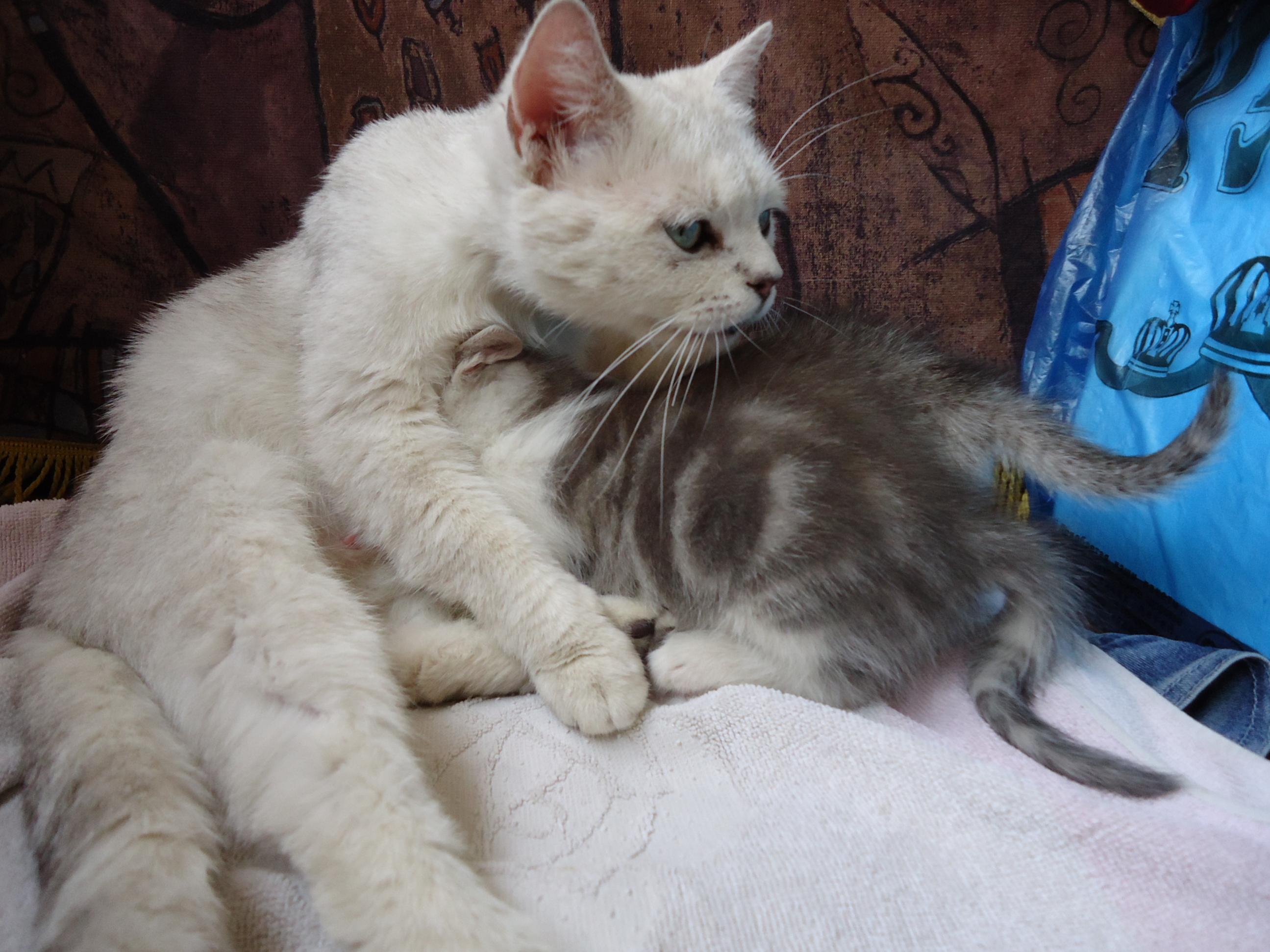 котята идут на поправку, оба хорошо кушают, ходят в лоток, глазки чистые. А вот мама их... нос забит, дышит тяжело, а самое плохое - это раздувшийся живот. Сегодня были в Пульсе, врач назначил цефриаксон, гамавит. Завтра общий анализ крови, УЗИ. Этот малыш ищет дом. Уже практически здоров, отдается на условиях, необходимо доколоть антибиотик еще 5 дней, чтобы довести лечение до конца. Это мальчик. Глазки мы протирали мокрой ваткой, а так они у него чистые