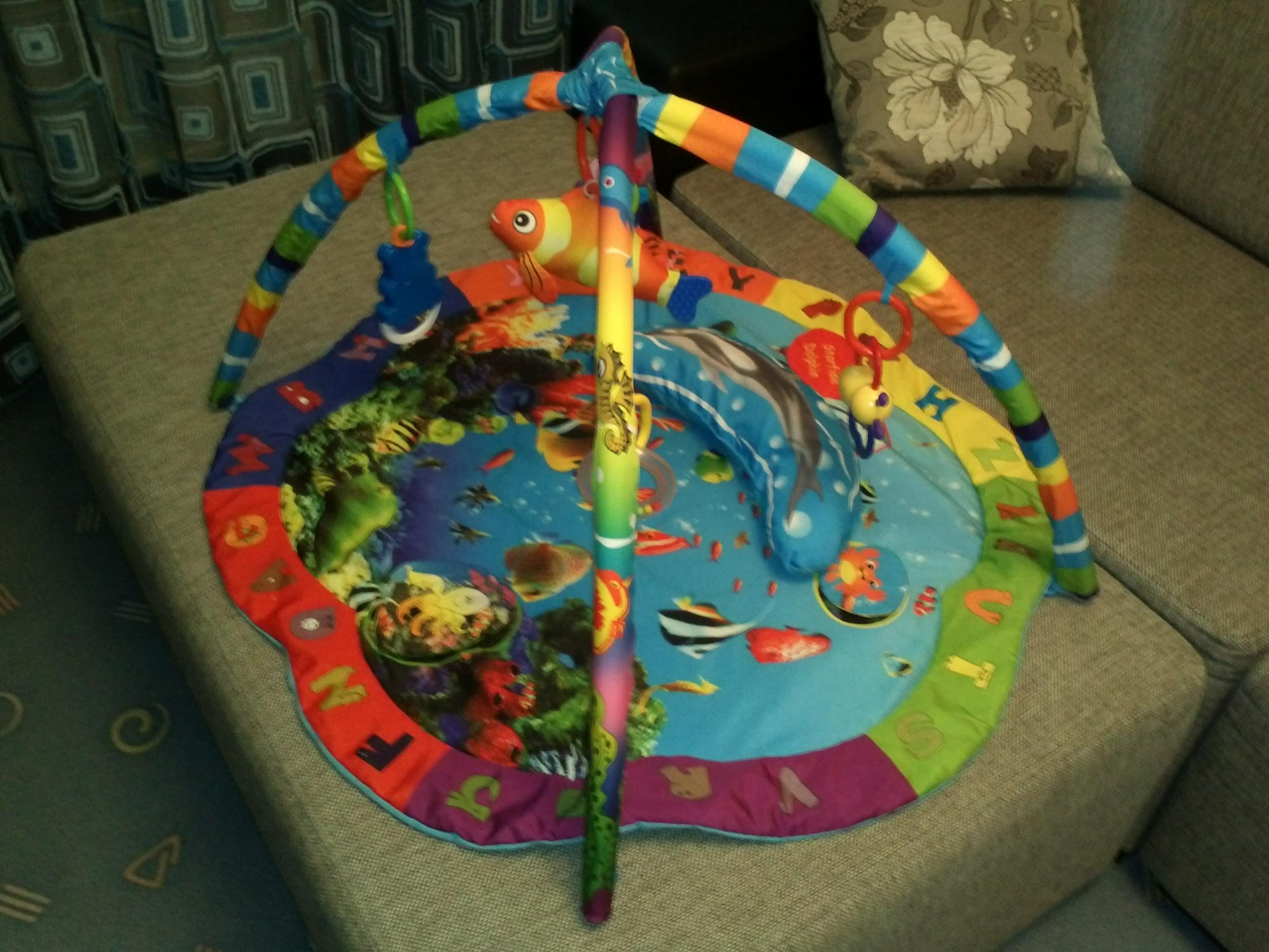 irko, там 5 игрушек (бабочка-погремушка, кольцо-погремушка, мишка-музыкальный, цветок-зеркало, рыбка-погремушка с оттягивающейся веревочкой) и 3 хрустящих лепесточка пришитых на коврике и подушечка Красноармейский, но иногда бываю во всех остальных ---------- Сообщение добавлено 27.05.2012 19:09 ---------- продано