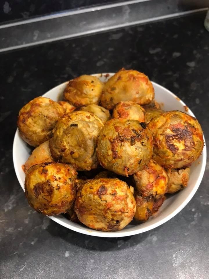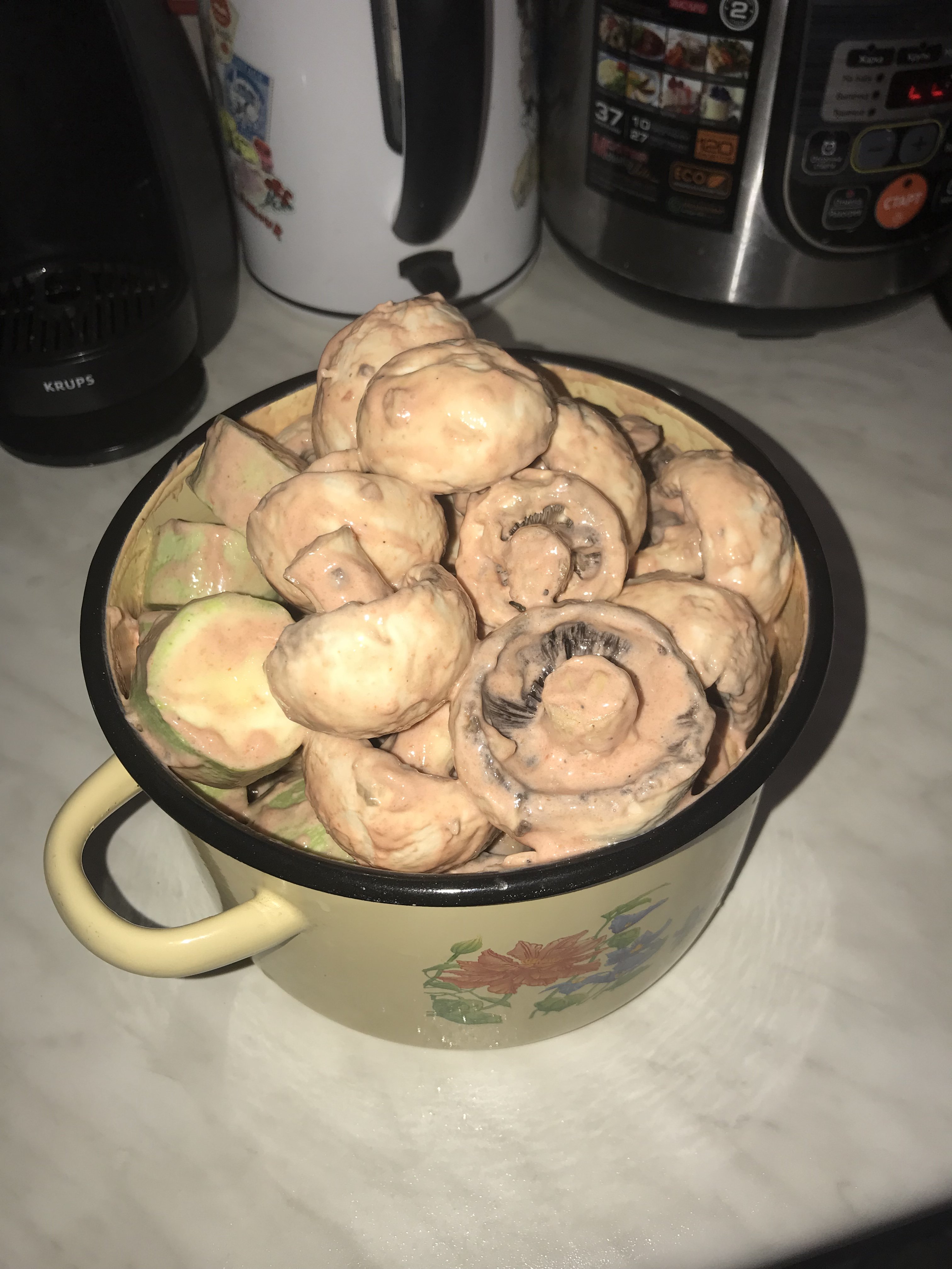 Шампиньоны предварительно замаринованные в кетчуп+сметана+соль перец