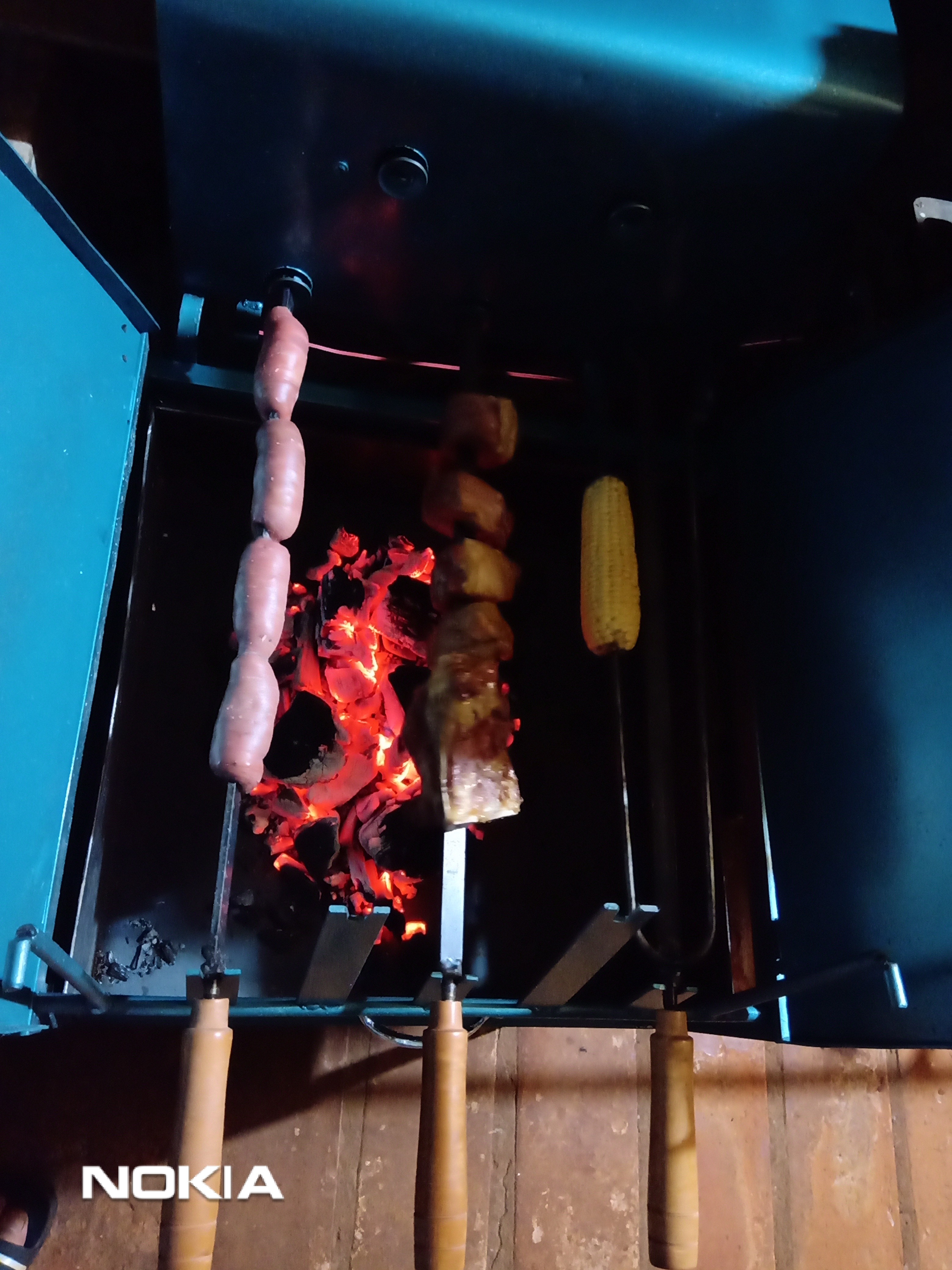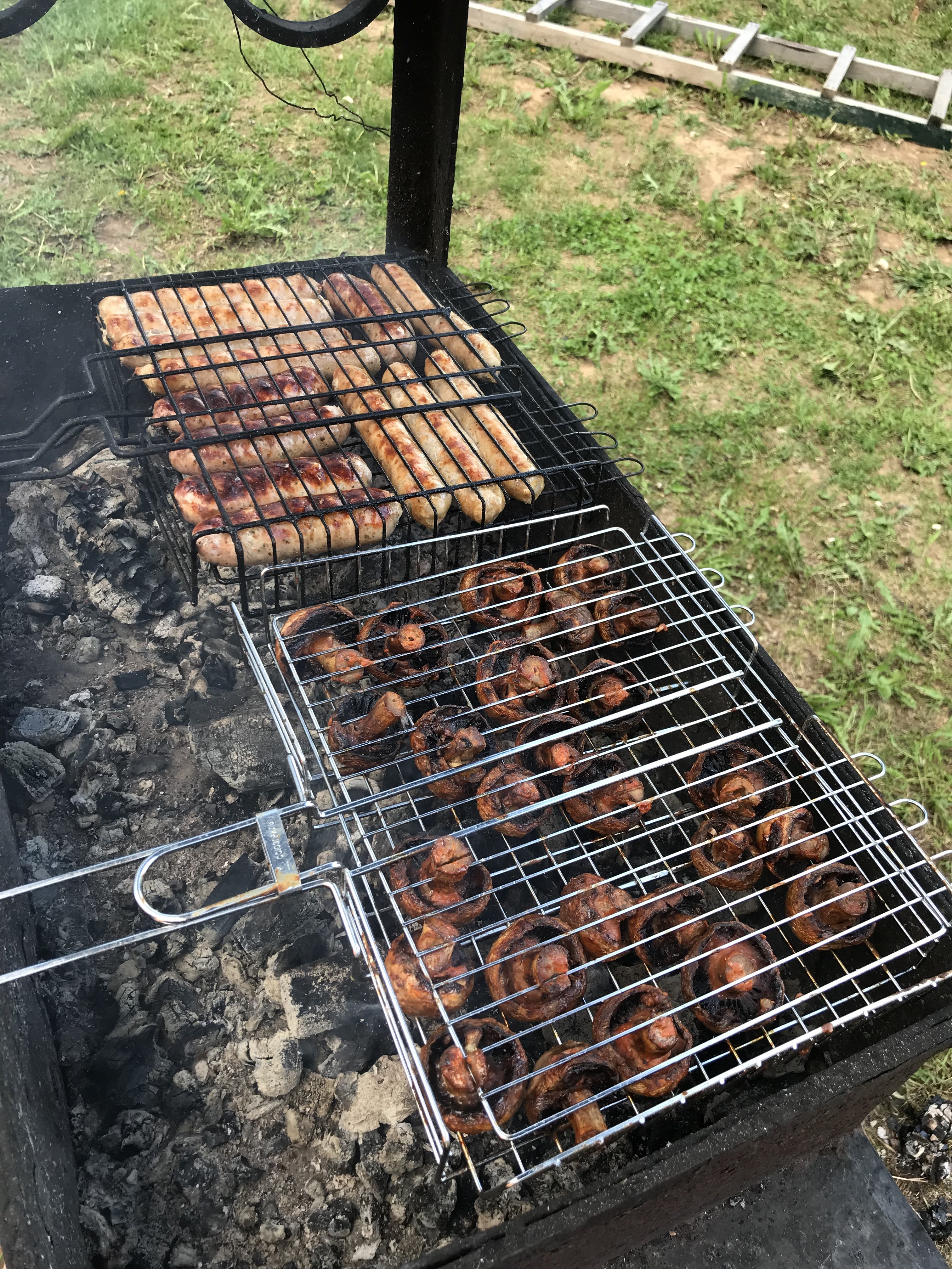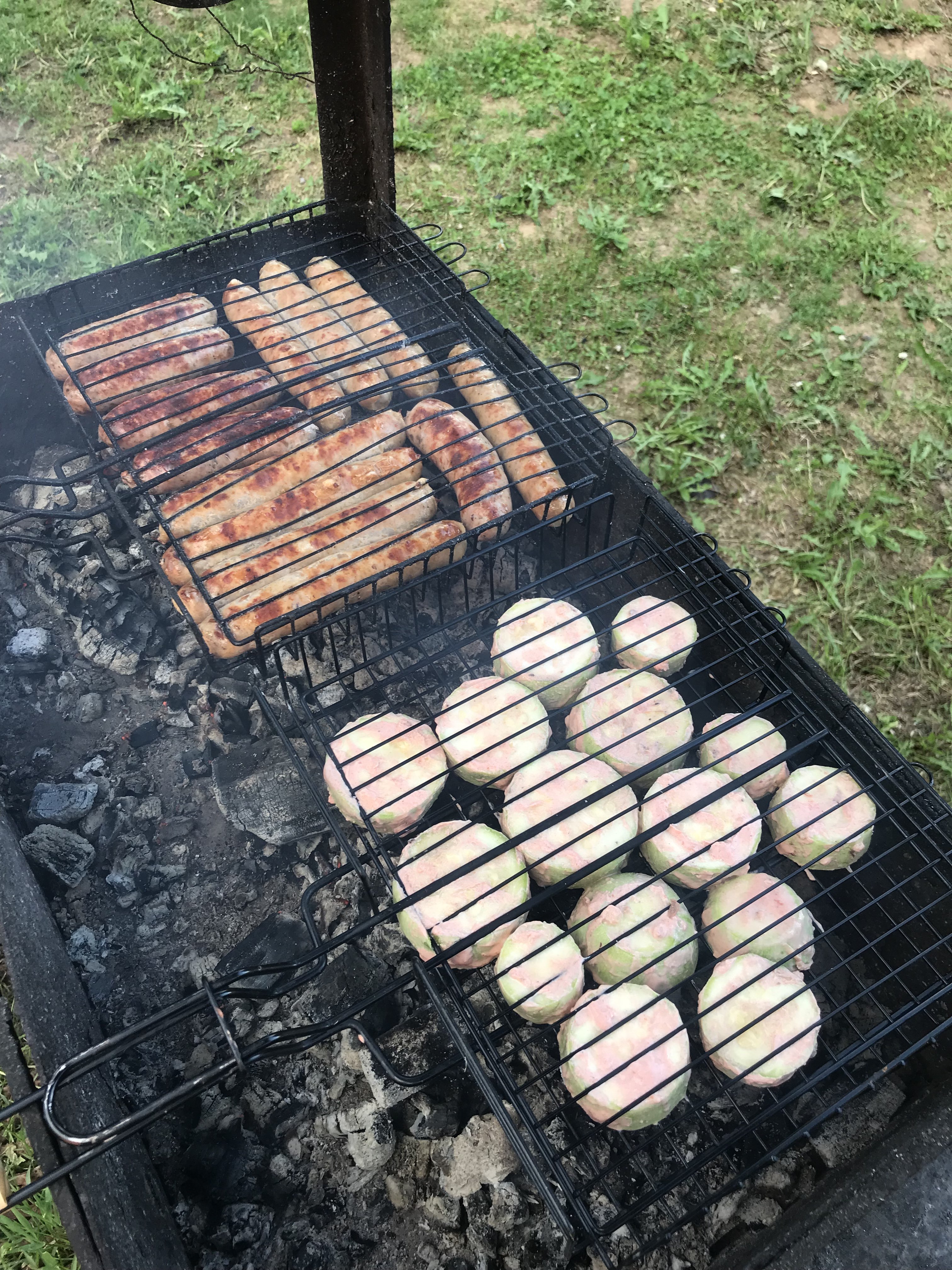 Сегодня купили такую грильницу. Сама крутится, мясо не зажаривается с одной стороны и куски в своем соку крутятся, на угли не капают.