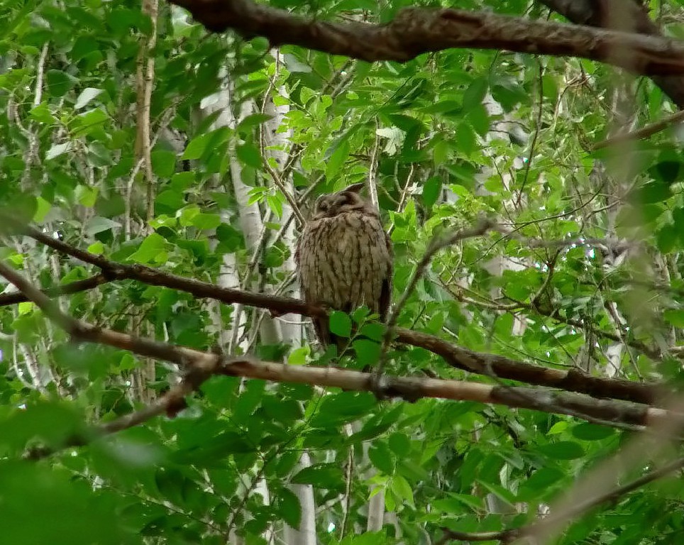 мне лично они совершенно не мешают, и вообще я их не вижу и не слышу. о том,что их собираются истребить уставшие слушать ночные вопли жильцы, я узнала из новостей в группе ВК. взяла фотоаппарат и создала тут тему. вот что пишут В Контакте- "Мы сегодня были днём, когда птицы были малоактивны! По факту они оказались : ушастыми совами, которые имеют свойства селиться и в городской среде тоже, птицы ведут сумрачным или ночной образ жизни. Занимают уже старые имеющиеся гнёзды, по мере взросления птенцы перемещаются на ветки, откуда познают мир, летать они пока не умеют, передвигаются по дереву с помощью клюва и когтей, издавая писк, с помощью которого извещают родителей о своем месте нахождения. Что является огромным раздражителем для жителей близлежащих домов . Итогом того, мы засвидетельствовании: башмаки на дереве, вероятно кто то таким образом сбивал писклявых птенцов, мнение соседей тоже разделились: некоторые жильцы настаивали чтобы мы забрали птинцов, бабушки же не разрешали их забирать, говорили, что они им нужны- они на них смотрят! Достать их можно только с помощью вышки! Мы договорились об аренде вышки на завтра но решение так и не приняли: будет ли разумным забирать малышей из их среды обитания?"
