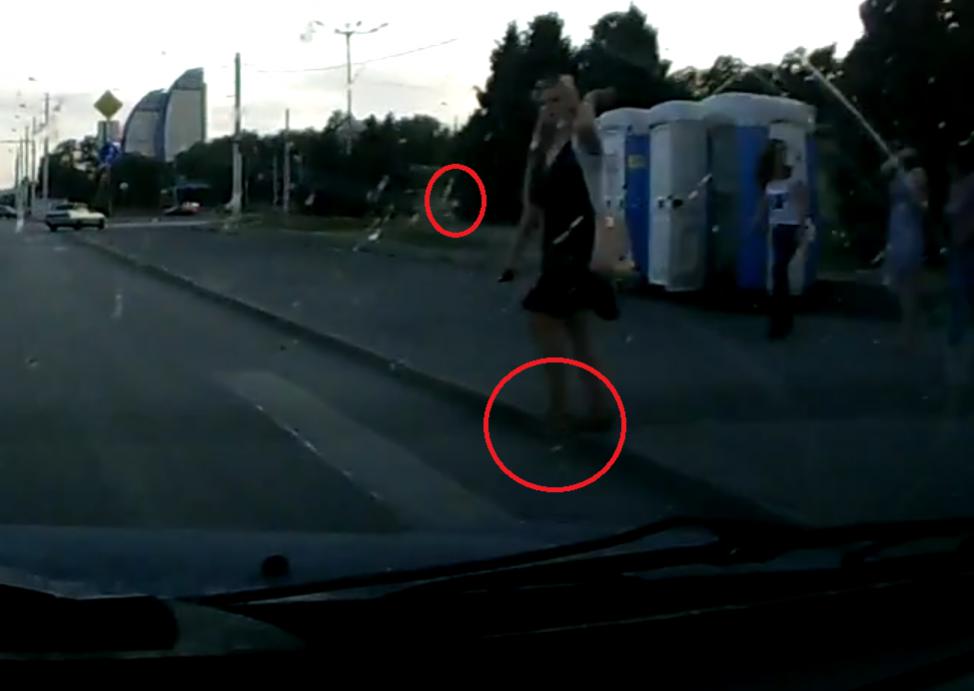 Прикольно было бы в момент касания босоножкой асфальта ей - услышать визг законных тормозов, видимо, и пол капота перед носом.