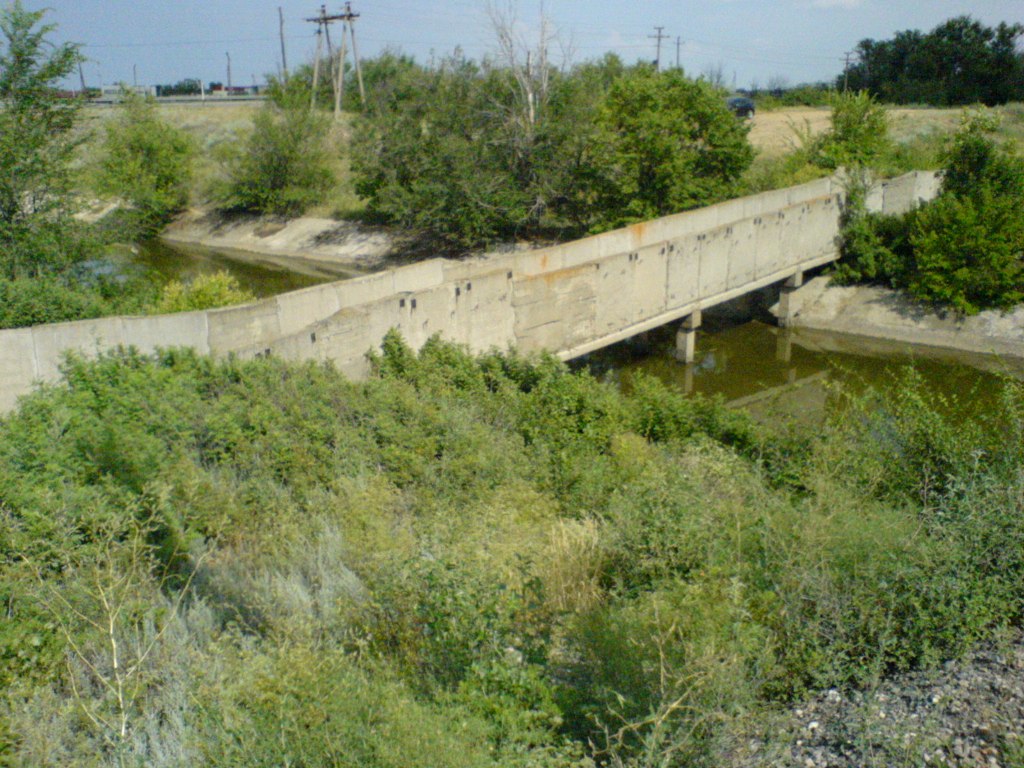 Как и было заявлено наше путешествие началось от знака Волгоград на выезде из города в сторону Максимки. Сергей живет в Волжском и на место старта был доставлен на авто. Первым пунктом нашего маршрута была деревня Ежовка, которая сейчас почему-то называется на картах Студено-яблоновка. Забурившись в балку в которой находится эта деревня мы стали из нее выбираться на другой стороне - на глаза попались красивые птички с красным хохолком (не какаду!). Это были удоды! Причем целая стайка. Вот только о ком-то они мне напомнили... Мы поехали по грунтовке в направлении на Красный Пахарь. Дорога шла к ЖД перееду. Мы обогнали трахтур Беларусь, который пер на прицепе какую-то ацкую машину на колесах. После переезда мы остановились передохнуть в лесополосе. Позже мы увидели чем занимался этот трактор на ближайшем поле - это был некий брикетовяз. Когда дорога стала пересекать фермерские поля наше велосипедное счастье стало по-немного заканчиваться - на дороге стали появляться неплохих размеров свежие говна с хорошими лужицами или целыми водоемами. Мы с опаской их обходили по краю полей. Проезжающий мимо нас по дороге на тракторе Беларусь гастер показал нам как надо ездить по таким "дорогам" - на полной скорости, поднимая кучу брызг грязной воды и жидкой грязи. Вообщем кое-как мы добрались до места где дорогу на Красный пахарь пересекает оросительный канал - фактически место начало нашей инспекции канала. Мы свернули с моста (через оросит канал) налево и поехали вдоль канала, чтобы найти где он заканчивается. Наша поездка все больше напоминала кросс-кантри после дождя, велосипеды становились все тяжелее и тяжелее и ехать было все труднее и труднее. Наконец форсировав очередной участок с жидкими говнами (а они попадались примерно через 10-15м) мы решили что с нас хватит, ну не доехали до места где заканчивается канал и фиг с ним. Пришлось чистить грязь с велов. Сереге было немного проще - у него был "настоящий горный велик" мерида матс 40 с дисковыми тормозами. Мне же пришлось еще несколько раз чистить говна - забивалась расстояние между колесами, вилкой и перьями и ехать было практически невозможно. Мы вернулись обратно к мостику где пересекается дорога на Красный Пахарь и оросит канал и поехали уже вдоль канала с другой стороны. Ситуация на дороге была лучше, но тоже не очень радужная. Дорога частично состояла из мокрых говен. Притом она то появлялась, то пропадала и нам приходилось ее снова находить. Тут нам даже помог случайно проходивший мимо полевой гастер, он все таки точно показал где в данной местности искать дорогу и мы ее нашли. Наконец мы добрались до поворота канала на 90 градусов. С этого места ситуация с дорогой улучшилась кардинально. Она больше не пропадала и говен стало попадаться гораздо меньше. Канал устроен очень интересно. Он петляет практически как настоящая река, только рукотворная и с бетонными берегами (но не везде). То расширяется, то сужается до размеров сточной канавы. Проложен по вершине земляного вала, местами идет по дну глубокой балки (рукотворной). Роль шлюзов выполняют трубы в три ряда между участками канала с разным уровнем высоты. Вобщем мы залезли на дорогу, которая шла практически рядом с каналом по вершине вала. Высота расположения канала по дороге быстро менялась. Вот он уже идет не по валу, а на равнине, а где-то непо
