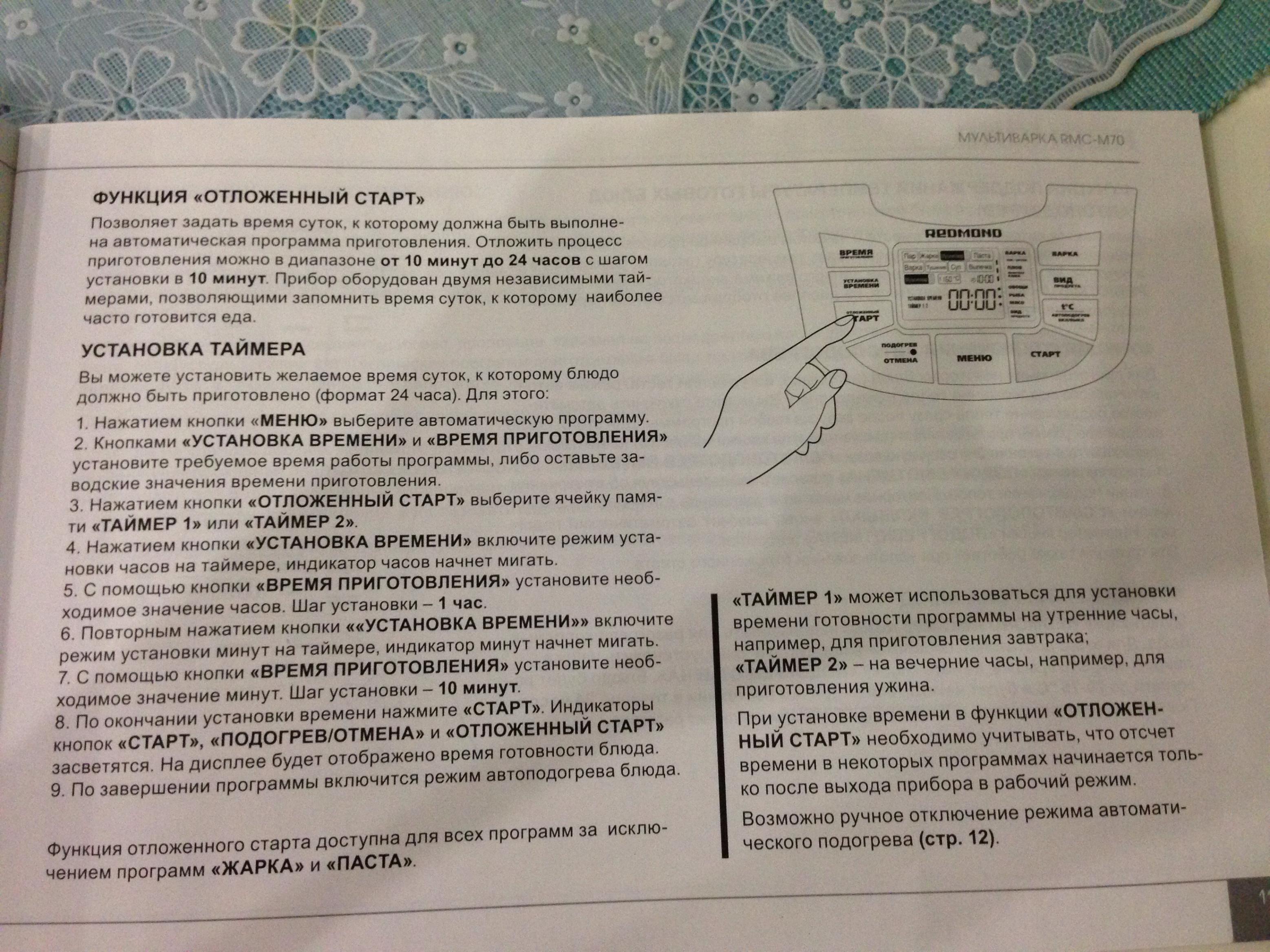 Плюс добавляю установку таймера. Таймер 1 - это время готовности блюда, ставишь 7 утра и в это время утром каша готова.