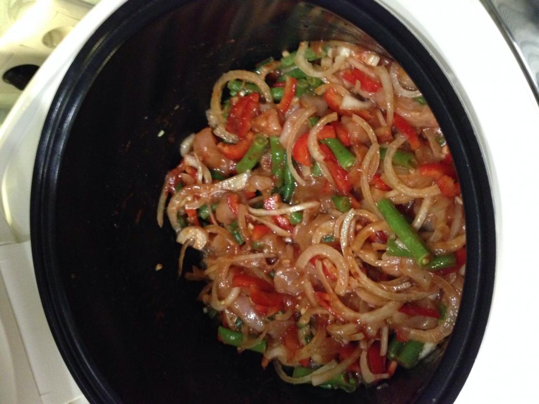 Чахохбили с фасолью (рецепт из книги рецептов к моей мультиварке) Куриное филе - 300 гр. Фасоль стручковая - 200 гр. Болгарский перец - 100гр. Лук репчатый - 100 гр. Растительное масло - 50 гр. Вода - 200 мл. Соль, специи Перец и лук нашинковать соломкой 0,5*3 см. Филе курицы нарезать кубиками 0,5*1 см. Всё выложить в чашу мультиварки, добавить соль и специи, залить водой, перемешать. Программа - Тушение. Вид продукта - Мясо. Время приготовления - 1 час. Я всё нарезала как мне нравится.