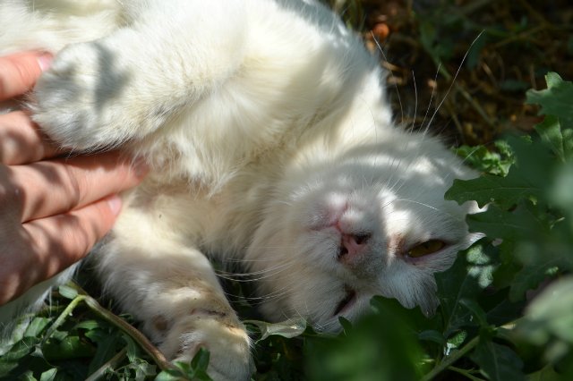 Котенок по имени Маугли привыкла жить в разной траве и кустах. Живет на остановке, сначала под молочным киоском, потом под овощным. Ей 4-5 месяцев. 1.5 месяца назад она сильно заболела бронхитом, кашляла, глазки почти не открывались, но мужественно вытерпела все уколы и теперь она здорова. Ищем ей лучших хозяев. Она- добрый спокойный котенок, мурлыкала даже во время неприятных манипуляций. Ее подкармливают немного, но все-таки она хочет домой. Хозяин, отзовитесь... Маугли живет в Краснооктябрьском районе, но привезем ее в любой район.