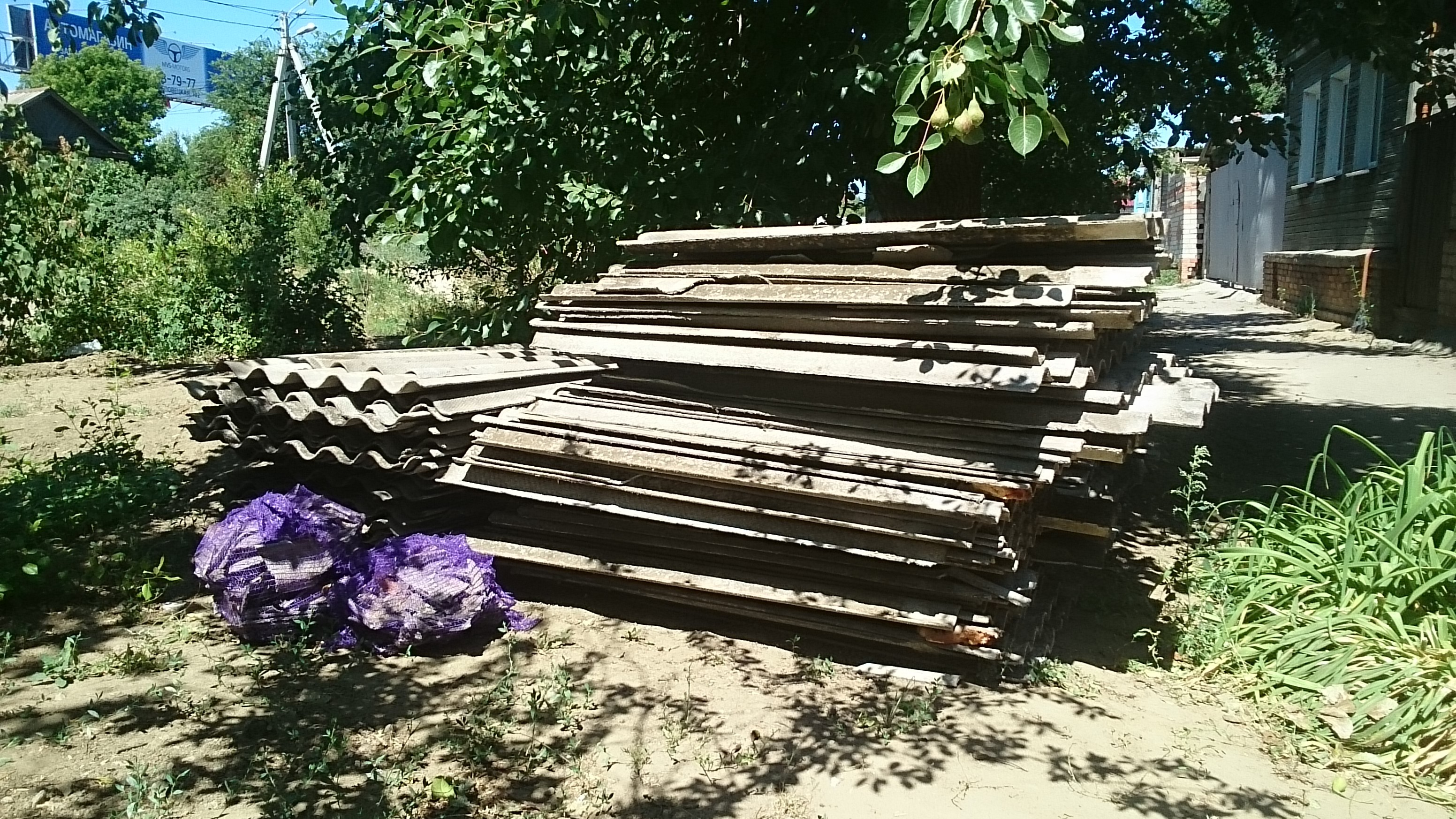 Совет: шифер отдавай "весь как есть". А то тот, что получше заберут, а дерьмо оставят и придётся потом заниматься вывозом.