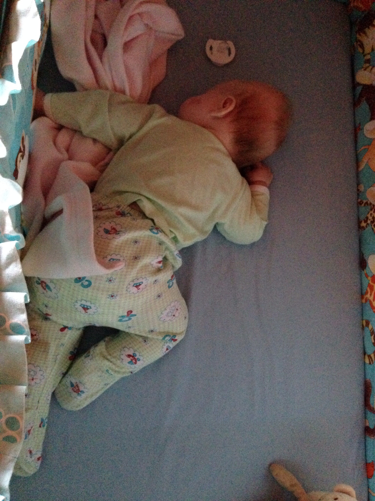 Нет, сушки нет. И меня теперь там тоже нет Мы теперь деревенские кочевники Сегодня потеряла Дашу, в 7:35 проснулась и не понимаю что происходит, тишина, в окошке только птички утренние поют, подхожу к кроватке и вижу (см фото) 21:05 кормление 22:20 уснула 03:00 завертелась, попила воды 08:20 проснулась Сегодня была ночь без еды и просыпаний. Прям праздник какой-то, надо запомнить этот день))) Я всё еще веду дневник её режима, мне помогает, иногда просматриваю, анализирую. Она практически всегда уже засыпает сама, я её не качаю, очень редко вечером или днём бывает, а так кладу её и она сама засыпает. Днём засыпает быстро, вечером иногда (как вчера) может засыпать час, лежит кувыркается, ищет удобную позу. С 3х месяцев в подгузник не какает, я её высаживаю. Она подает сигналы что ей надо в туалет, но иногда да, сигналы я могу просмотреть и дело делается в подгузник. Стоит на четвереньках качается, еще не ползает, только задним ходом, изредка получается вперед. И по питанию, что вы вводили после кабачка, брокколи и цветной капусты?