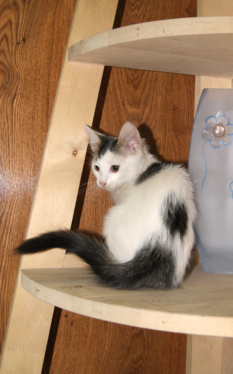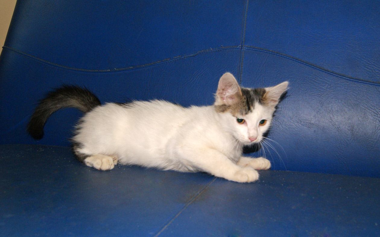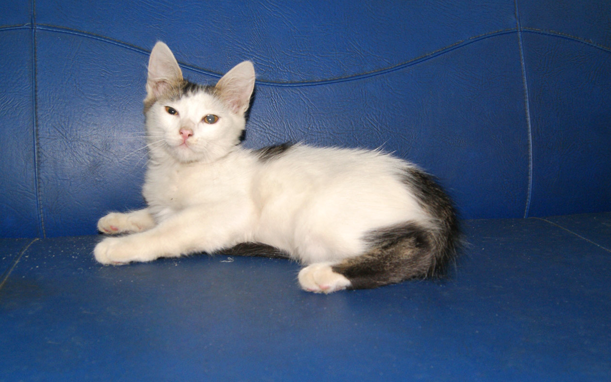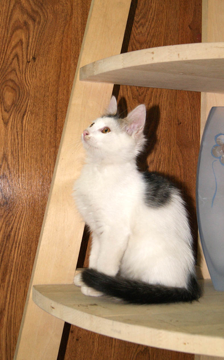Есть котик, беленький с пятнышками, очень ласковый и разговорчивый, все его залюбили и маманя и сестренки,но в обиду себя не дает.Сегодня постараюсь, их всех, поотдельности пофоткать.