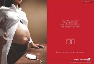 Реклама службы онлайн-бронирования а/билетов VirginExpress. PS: надпись с правой стороны гласит: "Раньше закажете - дешевле полетите".