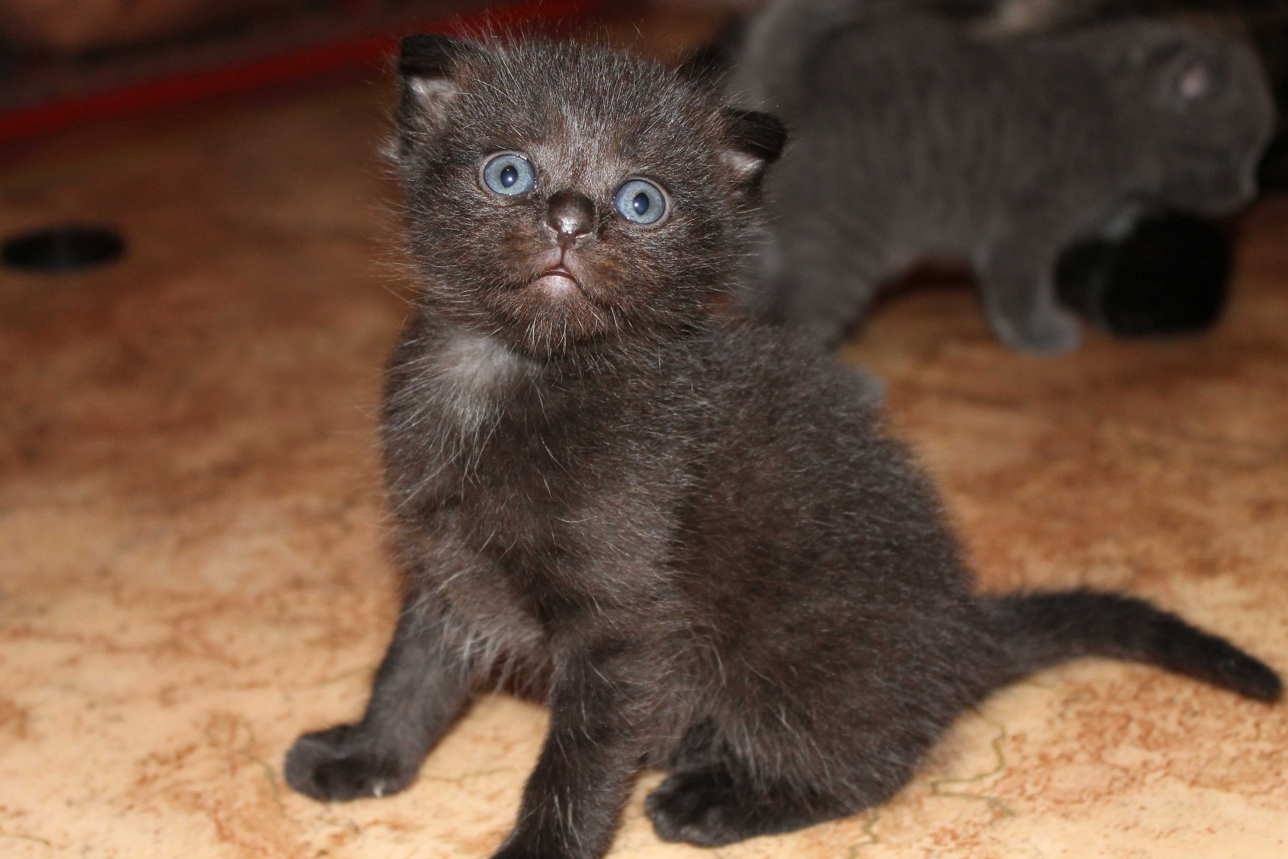 Серенькая-девочка, а полосатик-мальчик,а чернышки-один,мальчик,другая девочка. Тут смесь трёх пород: мать на половину сиамская,на половину шотландская веслоухая,а папшка-британец. Черные котятки,на самом деле не черные,а тёмно коричневые,девчёнка та вообще как пантера,а у мальчика немног7о полосочки проявляются. Когда вырастут будут обалденные коты! Котята активные ,подвижные. Родились 18 июля!
