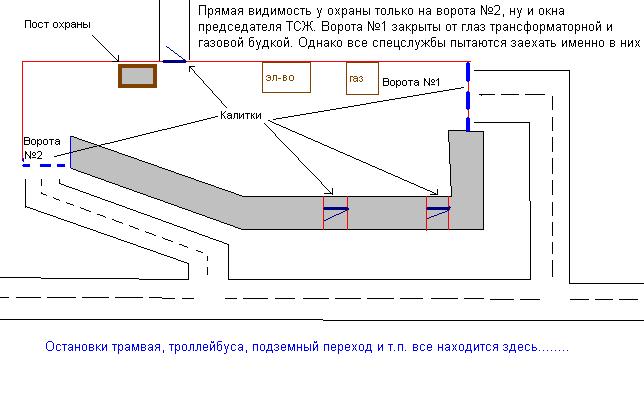 Форумчане! Нужен совет. Для начала основная информация. В нашем дворе организована следующая схема входа/выхода людей и въезда/выезда транспорта. Весь двор окружен забором. С двух сторон от дома автоматические ворота. У каждого собственника есть пульт (пульты. кому сколько нужно). Кроме того, возле этих ворот, в двух арках и на противоположной стороне двора есть калитки, закрытые на электромагнитный замок. У каждого собственника есть ключ от этих калиток (опять же кому сколько нужно). Есть круглосуточная охрана во дворе. Казалось бы идеальные условия. Но эта безопасность иногда оборачивается боком. В нормальном бы доме будку охраны поставили бы на одни из ворот, назвали бы это главным (центральным, каким угодно) входом и охрана могла бы осуществлять пропускной режим. Но у нас будка охраны стоит в глубине двора. Ладно, вроде какая разница. Нажми кнопку вызова охранника, и тебе откроют... Но хоть триста раз обойди вокруг дома, такой кнопки нет. Есть два листочка формата А4 на каждых воротах (не на пешеходных калитках, а именно на воротах), на которых написано мелким шрифтом, что въезд осуществляется через ворота №2, и на втором мобильный телефон охраны. Т.е. связь с охраной по мобильному телефону!!!!! Ну думал и хрен бы с ним. А теперь ситуации, с которыми я столкнулся за год существования этих "мер безопасности"... 1. Вызов ребенку участкового врача на дом... Думаю вы догадались, что подойдя к дому врач элементарно не может к нам попасть. Ей либо нужно знать сотовый телефон того, кто сидит с ребенком, этот человек должен позвонить охране, охранник минут через 5 (пока оденется, дошагает до калитки) открывает. Обратный выход в том же режиме... А зимой и -20 бывает... А врач стоит, ждет... Тоже самое происходит и с гостями, и прочее. Да, конечно можно спуститься самому. Но ведь ребенок может быть грудным.... Т.е. сиди дома один, и никто к тебе не придет. Ну или купи 100 ключей и раздай их всем кому хочешь... Один хрен 101-й человек уже пролетает... 2. Пожар. Время около 11 вечера. Чую в подъезде дым, набираю 01, называю адрес, мне говорят, что вызов уже был, машина выехала ждите. Ну думаю, раз вызов уже был, значит охрана в курсе. Только подхожу к окну и вижу картину... 2 пожарных лезут через забор, я набираю охране, говорю сонному голосу: "Ты видишь че у тебя во дворе творится?" Через три минуты у подъезда появляется все руководство ТСЖ, которых пожарные готовы были сами запихать в этот горящий мусоропровод. Мат стоял отборный... Итог, пожарные сказали: "Е*итесь сами" и уехали, а эти чудики сами ведрами тушили пожар... 3. Украли сумку, в которой и ключи и телефон. Подошел к своему дому. Время 12 часов дня, воскресенье. 35 минут я стоял в 10 метрах от своего подъезда... Ну вот не выходит никто и не заходит... И хоть тресни... 4. Ну и в довесок, то что переполнило чашу терпения... Вызов Скорой помощи ребенку. Около часа ночи. Вызываю. Звоню охране, говорю: "Вызвал скорую, такая-то квартира, обеспечьте въезд на территорию" Ответ: "А как я угадаю на какие ворота она подъедет?" Путем нескольких нецензурных слов объясняю, что мне неинтересно как ты угадаешь, хоть открывай сразу все, но скорая должна проехать. Итог: скорая простояла 7 минут (со слов водителя скорой), потом связалась с подстанцией, те перезвонили мне и гневно (на их месте я был бы жестче в высказываниях) потребовали пропустить машину. Я был взбешен - это 