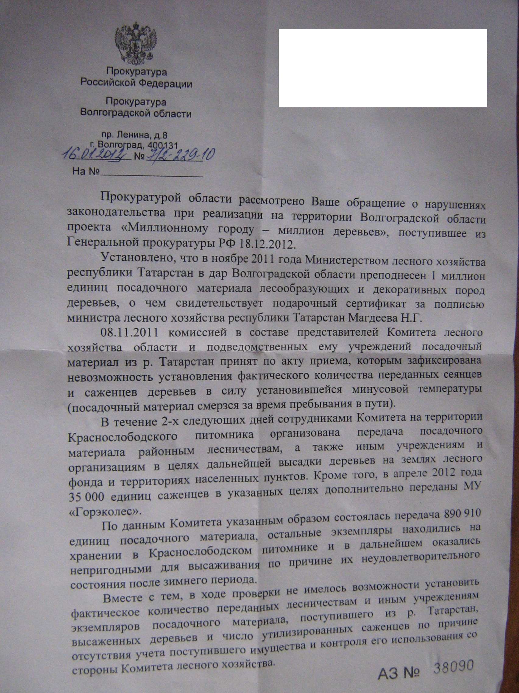 Как и ожидалось. Появилась вот такая отписка. Лишний раз доказывающая, что прокуратура у нас не "око государево", а прожирателигосударственныхденег. Переправил ответ городской прокуратуры в Генеральную прокуратуру РФ.
