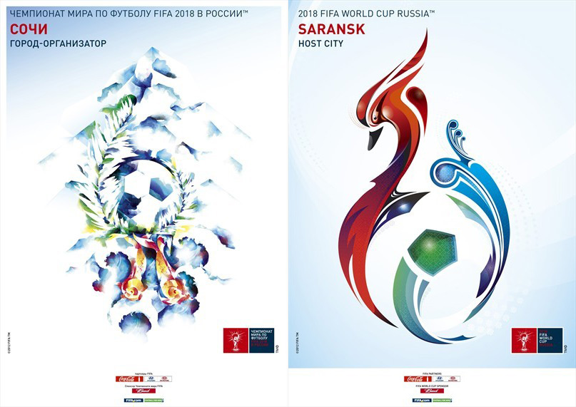 Понравился Саранск. Симпатичная птичка. Екатеринбург... это что? Цветок в котором вырос мячик? Санкт - Петербург... А при чем тут музеи? Волгоград... Какие загадочные квадратики. Казимир Малевич нервно завидует. Сочи... Зимой играть надумали? Самара... Вот какой плакат появляется, если найти картинку от игры "FIFA" 98. Ростов - на - Дону... А причем тут кони? Листья, если не ошибаюсь, дубовые. Это на что намек? Казань... Идеальный плакат для чемпионата мира по зимнему футболу. Москва... Профессионально, но как - то без изюминки. Калининград... Плакат из серии "матч состоится в любую погоду". Живенько! Один из трех лучших. Нижний Новгород... Хороший плакат. После Саранска для меня на втором месте.