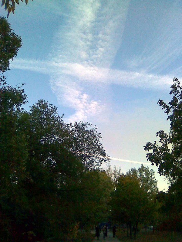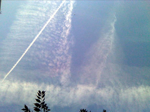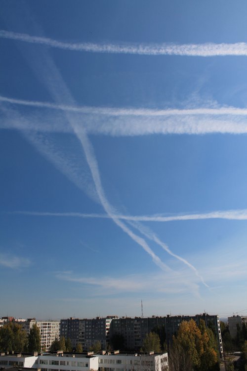 Наверное многие горожане обратили внимание на странное небо сегодня... Такие странные инверсионные следы на небе. Если понаблюдать за ними, то полосы превращаются в перистые облака и их уже не отличить на небе. Делают это дело военные истребители, самолетов очень много и распылять начинают аккурат над городом! То есть над нами. Похожая сетуация в городском небе наблюдалась в двадцатых числах сентября и вот сегодня опять... Интернет пестрит информацией на данную тему, называют это "химтрейлами" и якобы опрыскивают нас вовсе не витаминами В Украине даже делали запрос, оказалось их опрыскивала авиация НАТО... Так может у нас тут тоже над головой НАТОвцы летают уже? Базу разрешили, воздушное пространство открыли... Конечно, хотелость бы прочесть мнение военных по днному вопросу, но так же интересно мнение всех горожан. В США антиглобалисты провели расстедование данной темы, перевода к сожалению нет, только субтитры : [ame]http://www.youtube.com/watch?v=mEfJO0-cTis[/ame] Версии разные и очень тревожные, от микробиологического оружия до создания исскуственного слоя над планетой вместо азонового (которого якобы почти не осталось). http://srn.kharkov.ua/ru/chronicle/chronicle-hsrn/161-1.html - тут официальный ответ украинских властей, если кому интересно. Для справки, Химтрейлы - (от английских слов: сhemical-химический и trail,-след/хвост) следы оставляемые в небе самолетами распыляющими аэрозоли, «облака» которых висят в атмосфере от нескольких десятков минут до нескольких часов. Если в конце 90-х и начале 2000-х гг. химтрейлы были замечены над территорией США и Великобритании, то в последние годы химтрейлы обнаруживаются по вему миру. В том числе и над Россией, Украиной и другими странами, входивших в Советский Союз. По всему миру людьми замечается и фиксируется одна и та же картина: самолёты, распыляющие неизвестное странного вида (химическое, бактериалогическое?) вещество, и в дальнейшем: белая мгла - даже сизая мгла - которая покрывает небесное пространство, где это распыление происходило. Сведения поступают почти со всех городов России и Украина: Уфа, Норильск, Москва, Питербург, Краснодарский край, Волгоград, Киев, Харьков, Запорожье, Днепропетровск, Западная Украина, Прибалтийские страны, Молдавия... Это массовое явление! География - вся планета. Изначально распыление химтрейлов связывали с деятельностью излучателя ХААРП, однако это предположение не подтвердилось. Вместо этого предположения обнаружились и подтвердились научно и документально истинные причины распыления химтрейлов, от которых каждого нормального человека возникает желание убить «распылителей» и как можно быстрее.