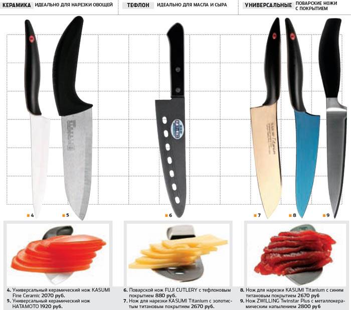 Правильные ножи - с титановым покрытием . Синенкий прикольно выглядит. В популярной механике разбирали эти новомодные сплавы для ножей: http://www.popmech.ru/article/3017-nozhi-kotoryie-mozhno-razbit/